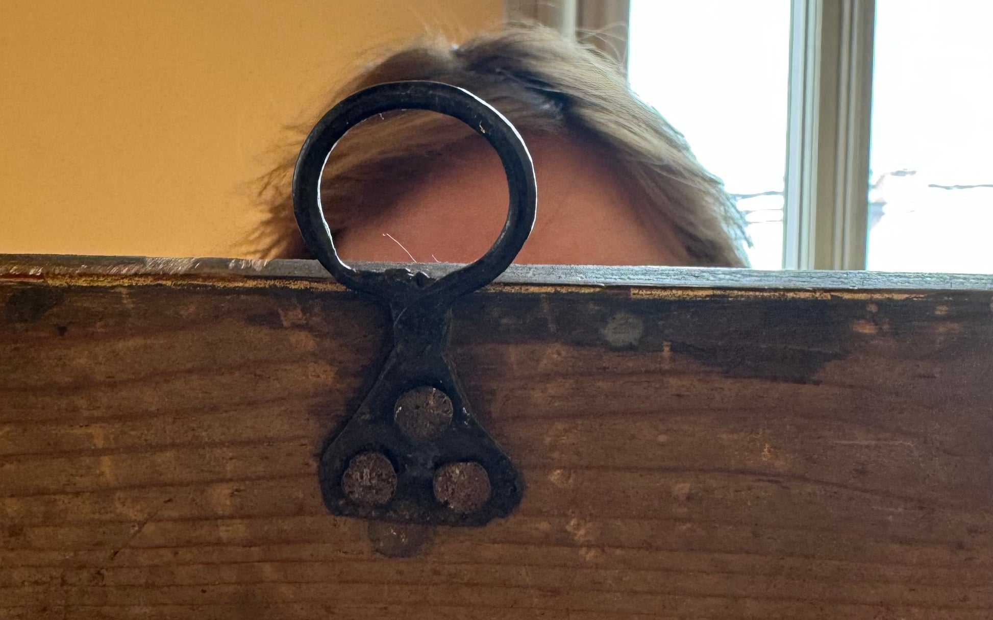 This 17th-century oil was relined probably at least 100 years ago. The varnish is breaking down and needs cleaning, but a very fine painting is waiting to come out here, although it still looks very good now. There is no loss to the painting surface, but there are a few tiny chips to the varnish, which shows the original colour underneath.