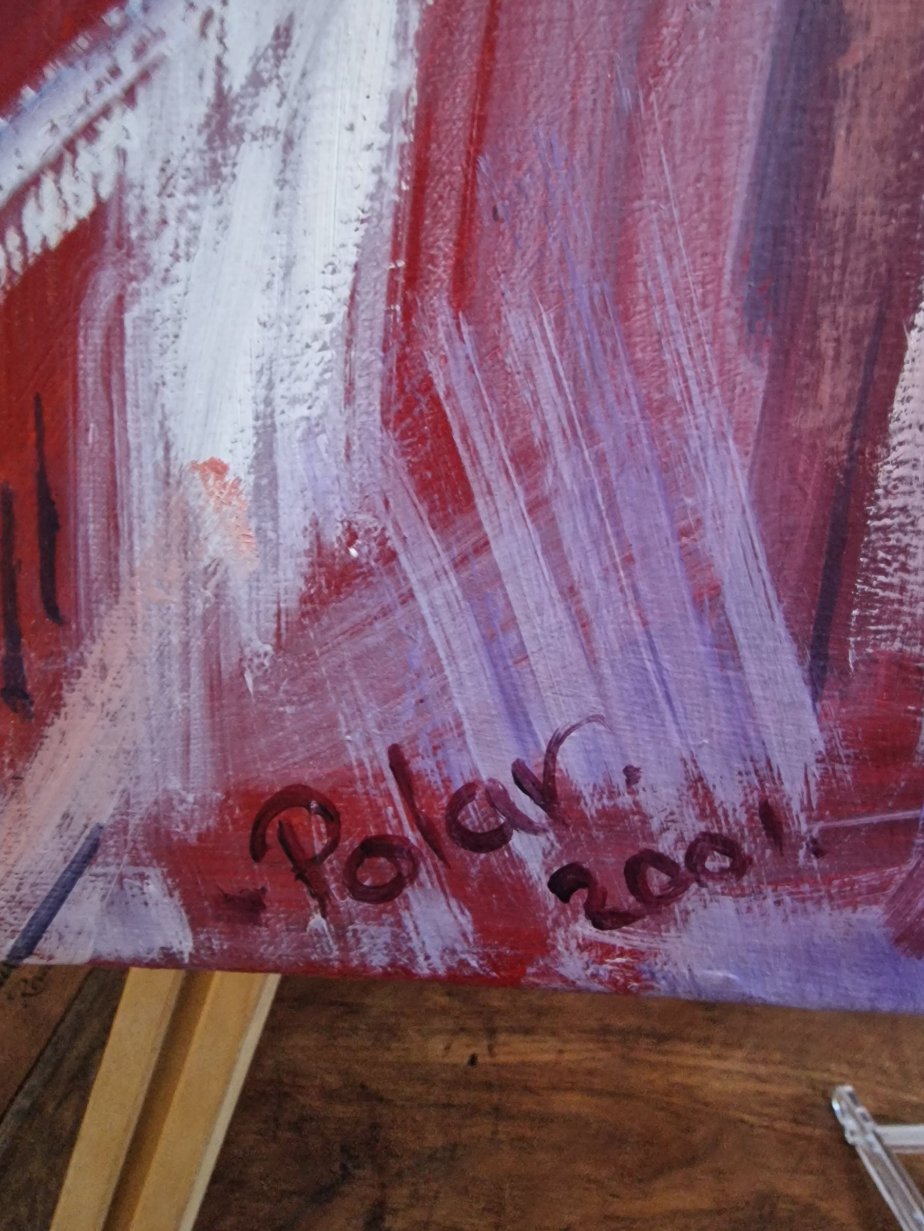 Un ritratto eccentrico e colorato di un bull terrier firmato in basso a destra. Il dipinto è stato realizzato nel 2001 e sarebbe un ottimo regalo per un proprietario di questo tipo di razza o per un collezionista di ritratti di cani in generale. Si prega di vedere le foto per una descrizione più dettagliata.