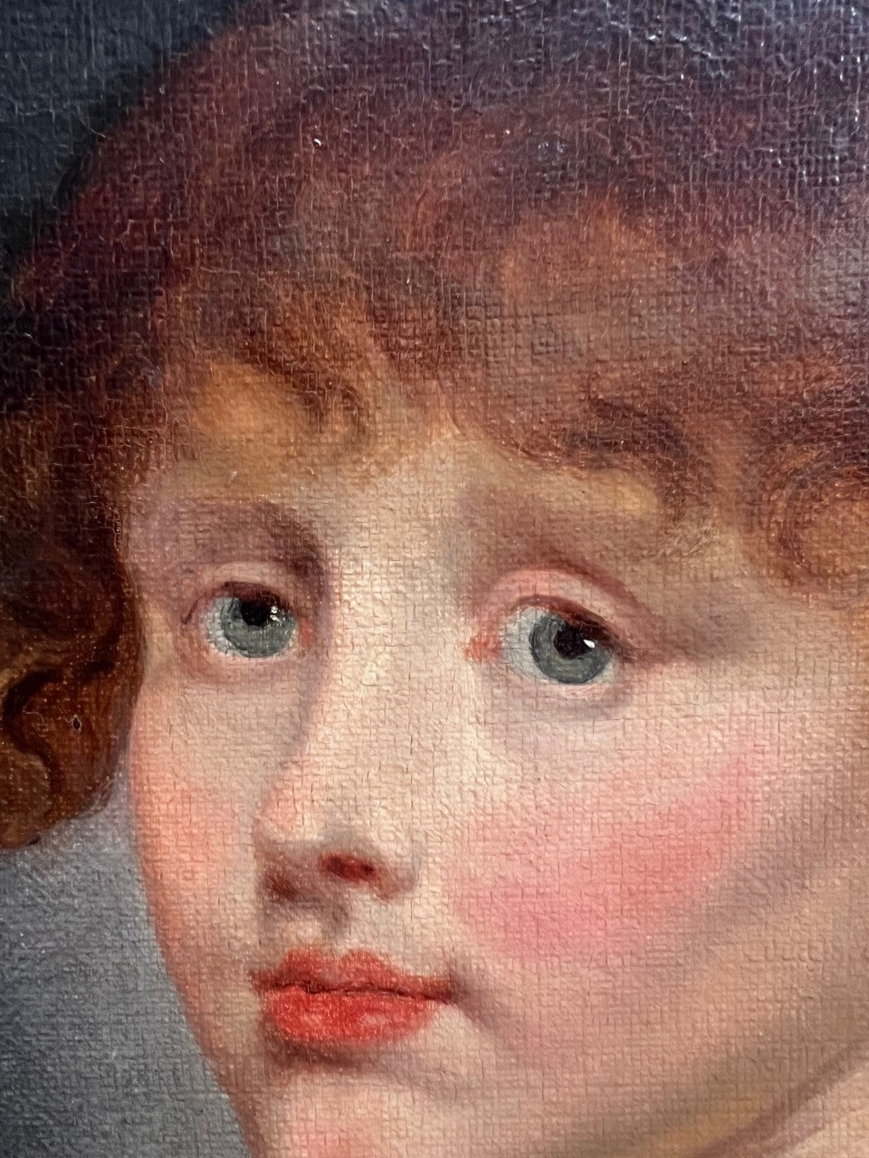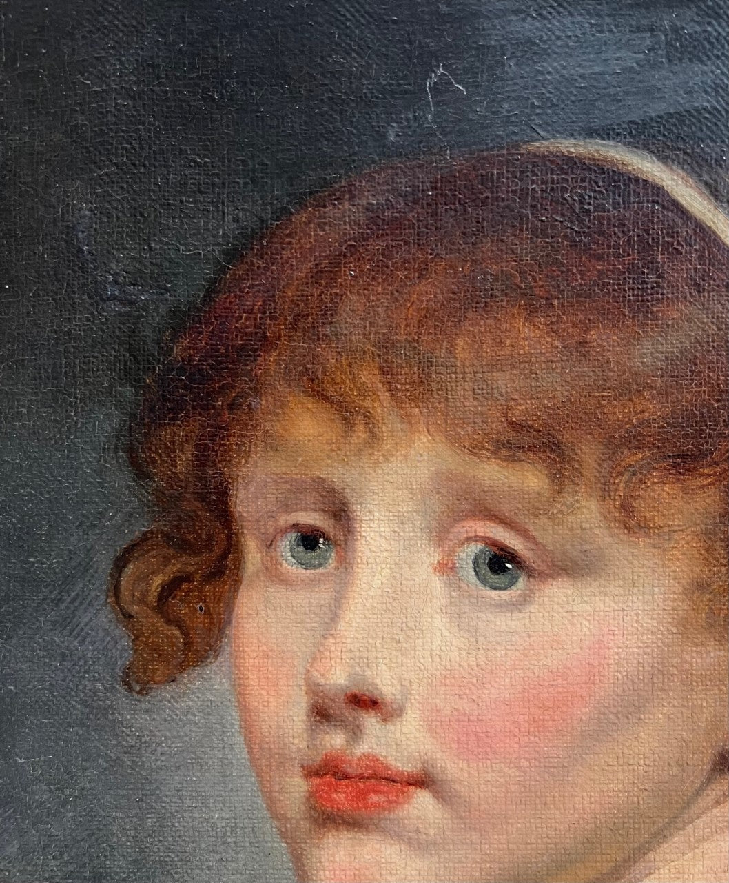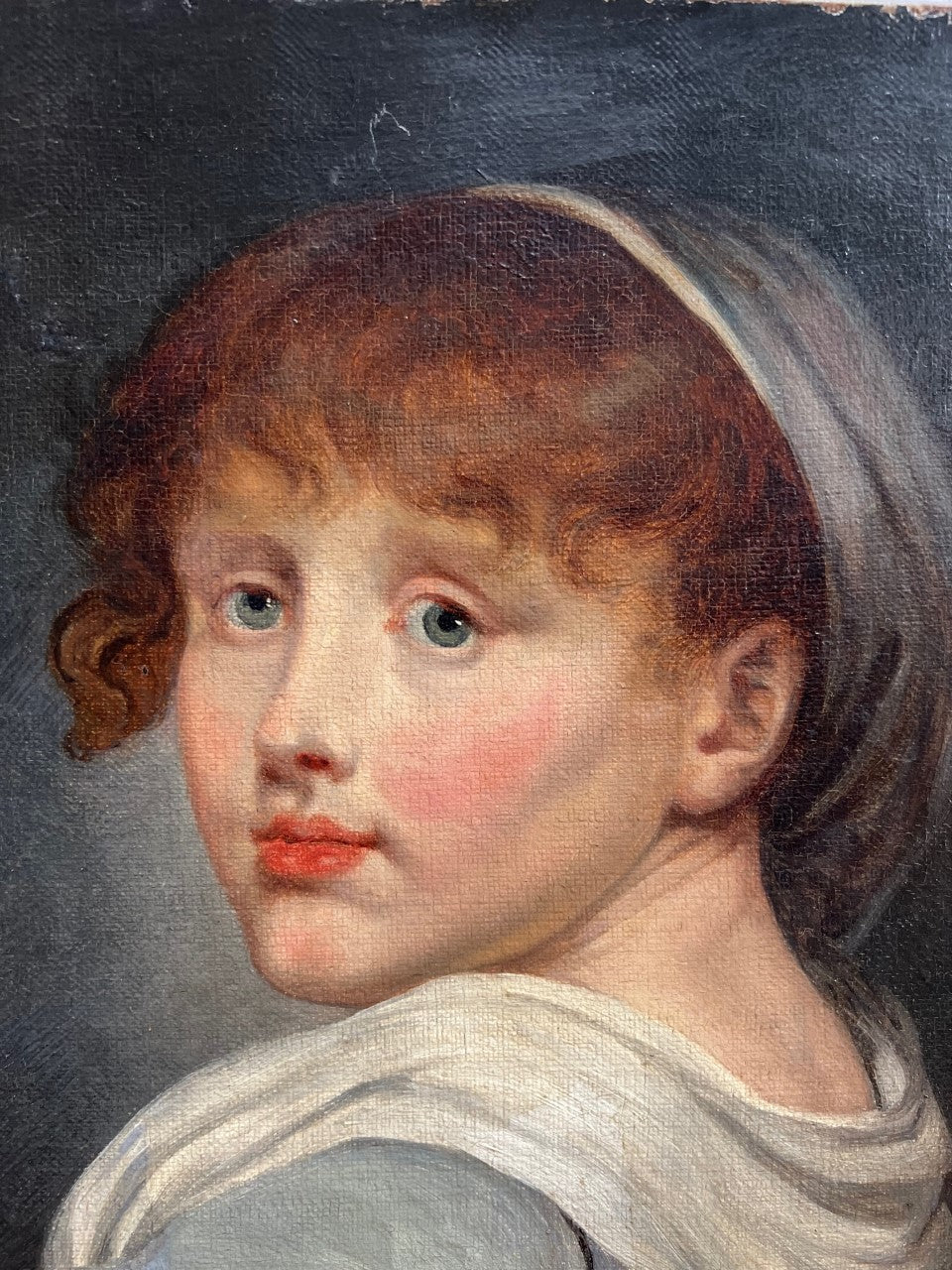 Questo ritratto è molto simile a un noto ritratto di Greuze. Non siamo stati in grado di identificare il marchio del collezionista sul retro.