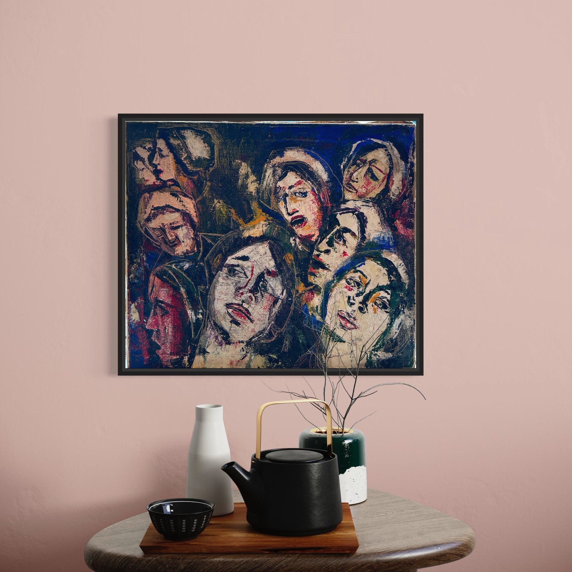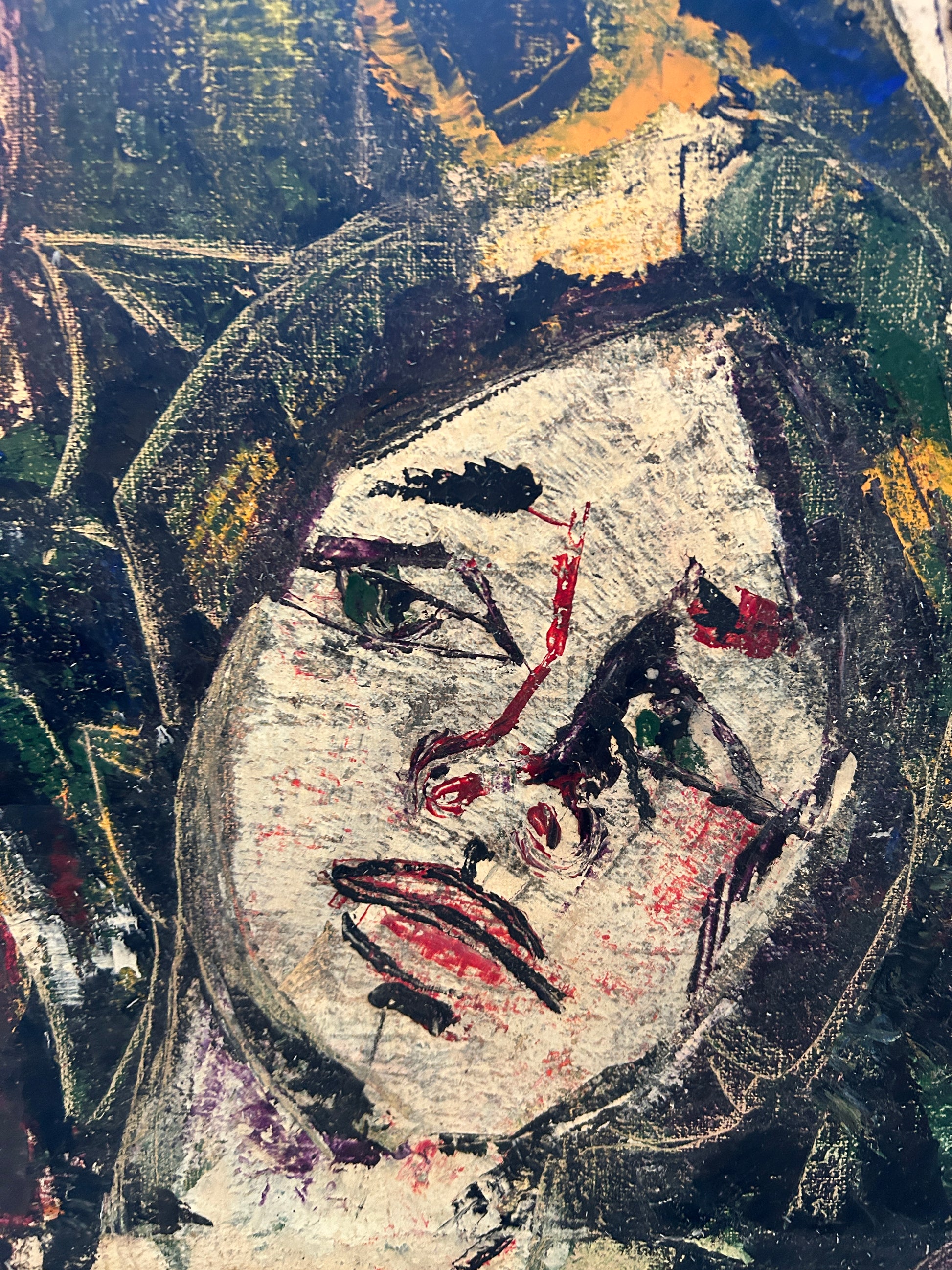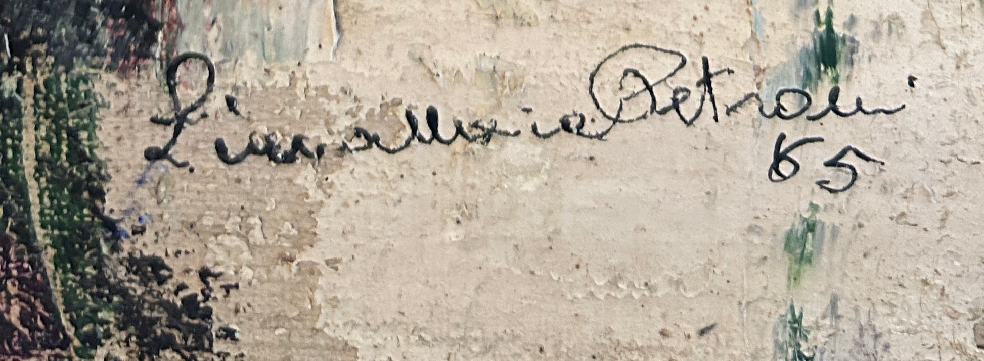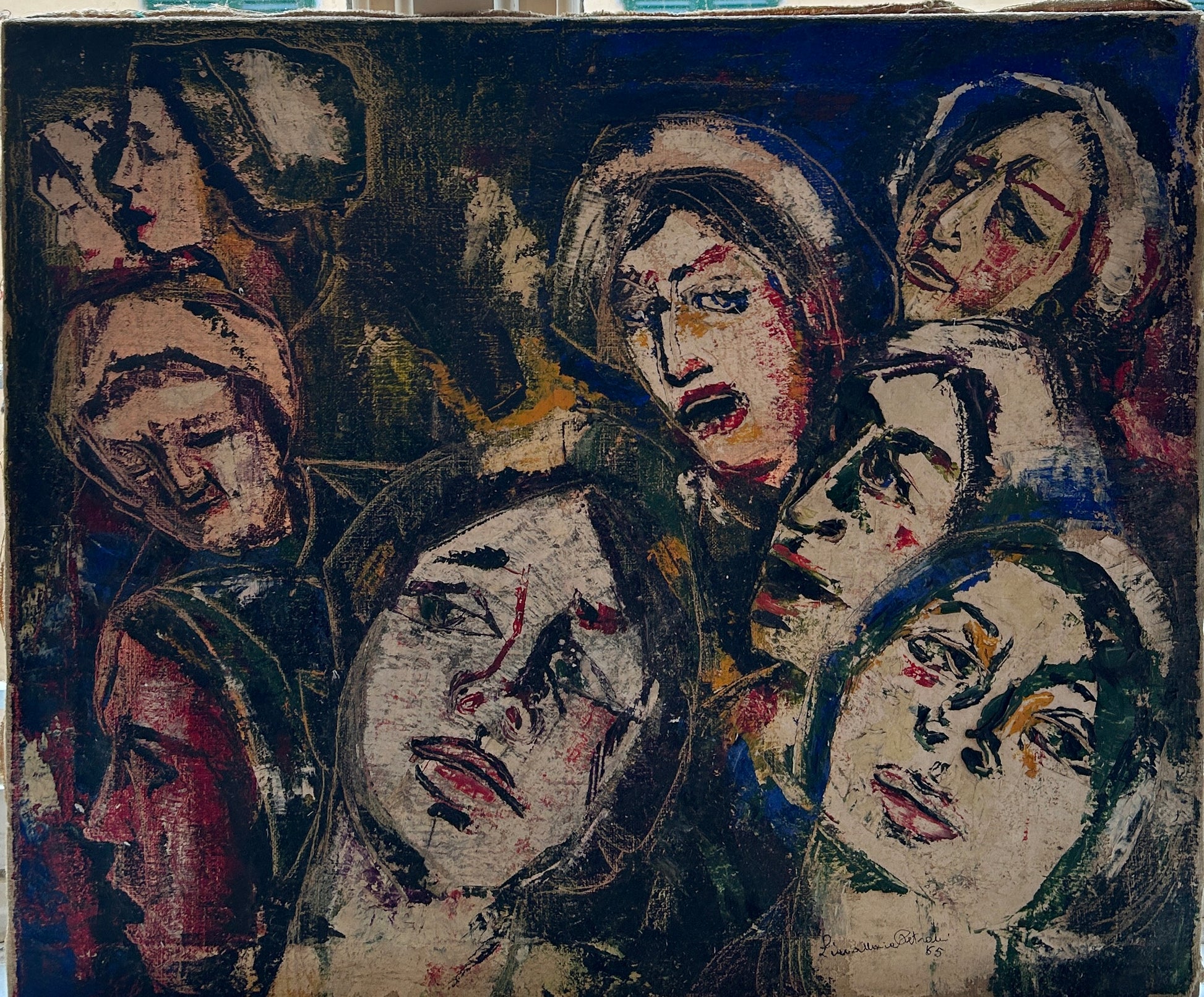 Un olio figurativo su tela coraggioso e audace degli anni '60. Firmato in basso a destra con firma indistinguibile datata 1965