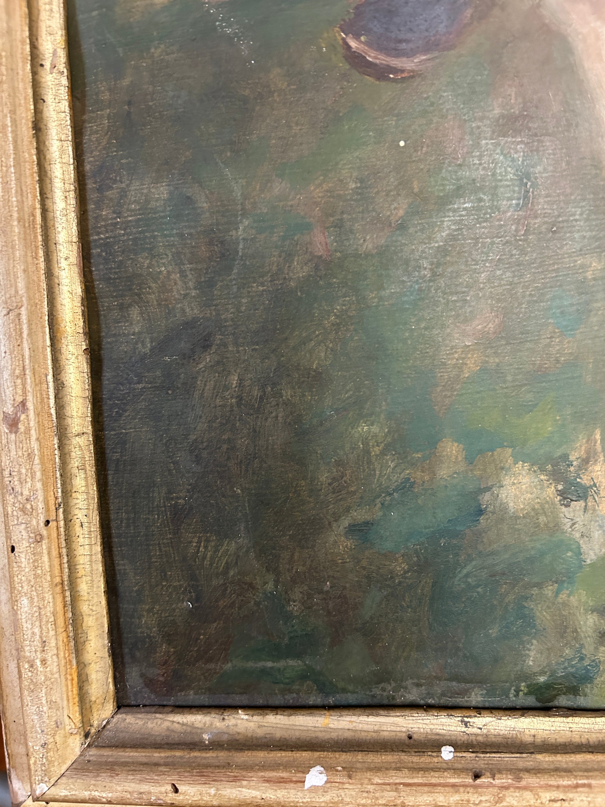 I am in love with this interesting mid-century Italian oil on paper. This mysterious painting is a great quality piece. Framed and ready to hang.