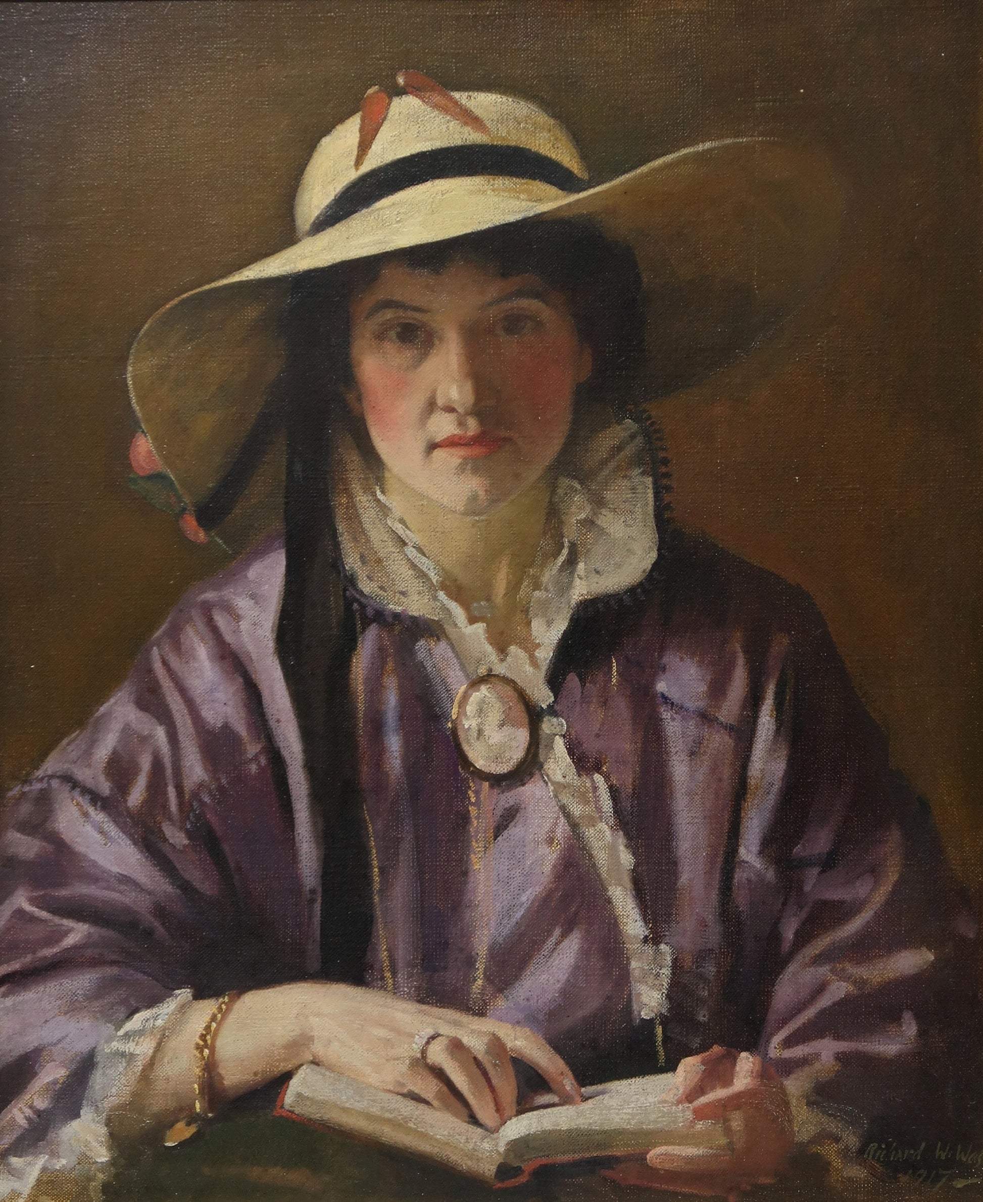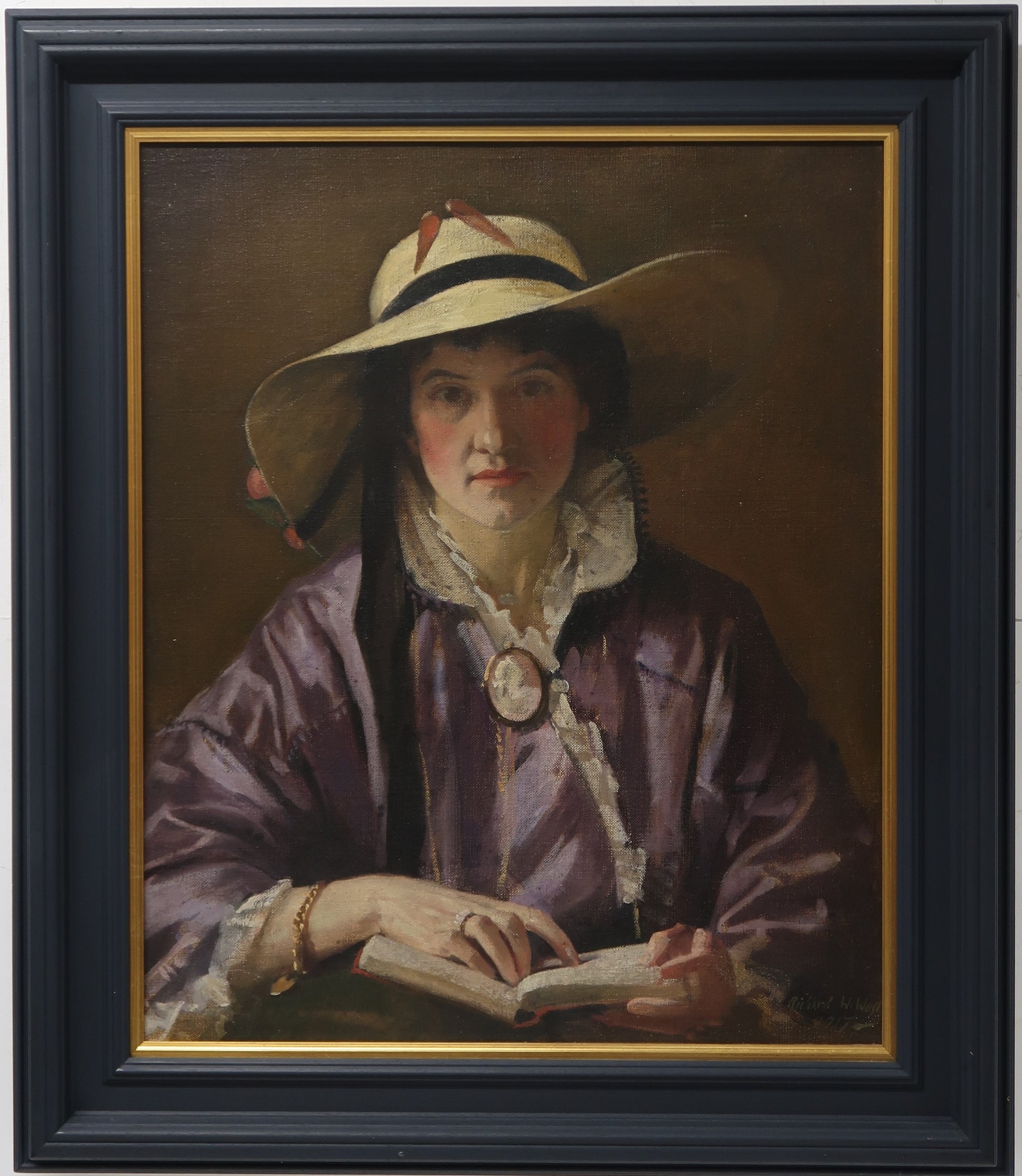 Nice quality early 20th century oil on canvas of a lady in straw hat, by the well listed Scottish artist Richard William West 1887 - 1970.