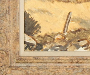 Molto interessante olio su tela degli anni '60/'70, anche se non firmato è monogrammato in basso a sinistra e ha un'etichetta sul retro con il titolo e il nome dell'artista?