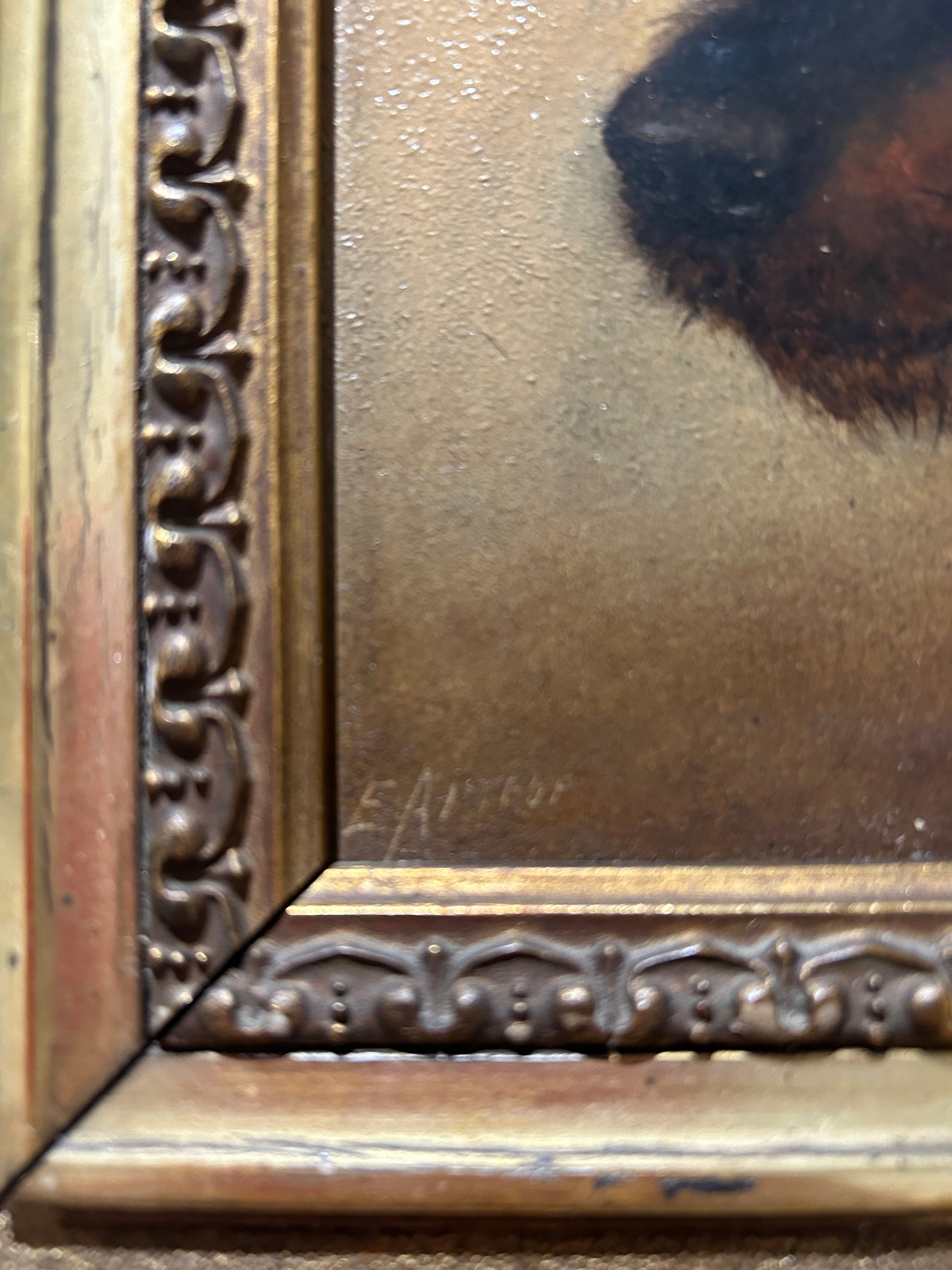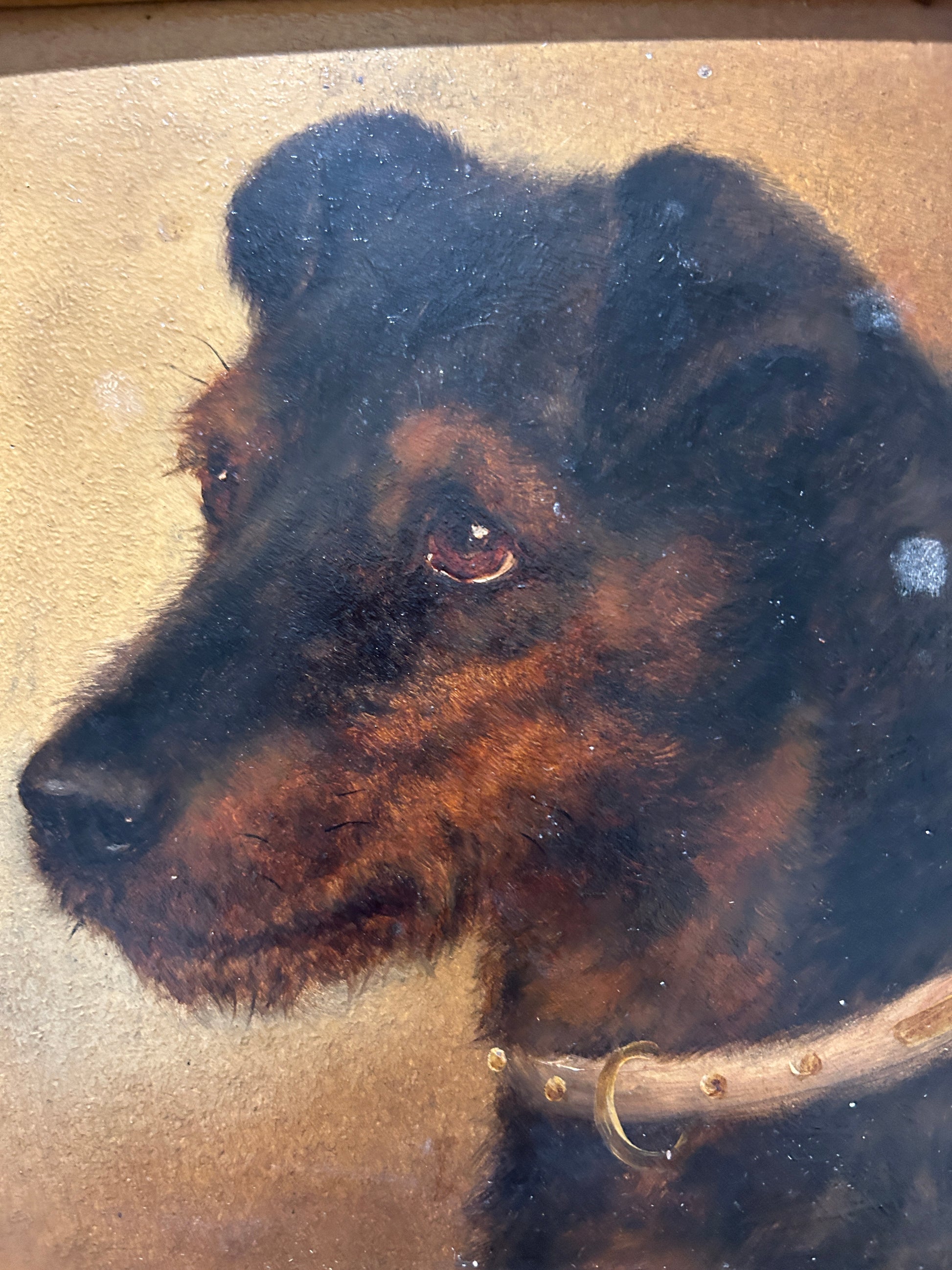 Un ritratto di cane di ottima qualità firmato in basso a sinistra. (Non riusciamo a distinguere la firma.)