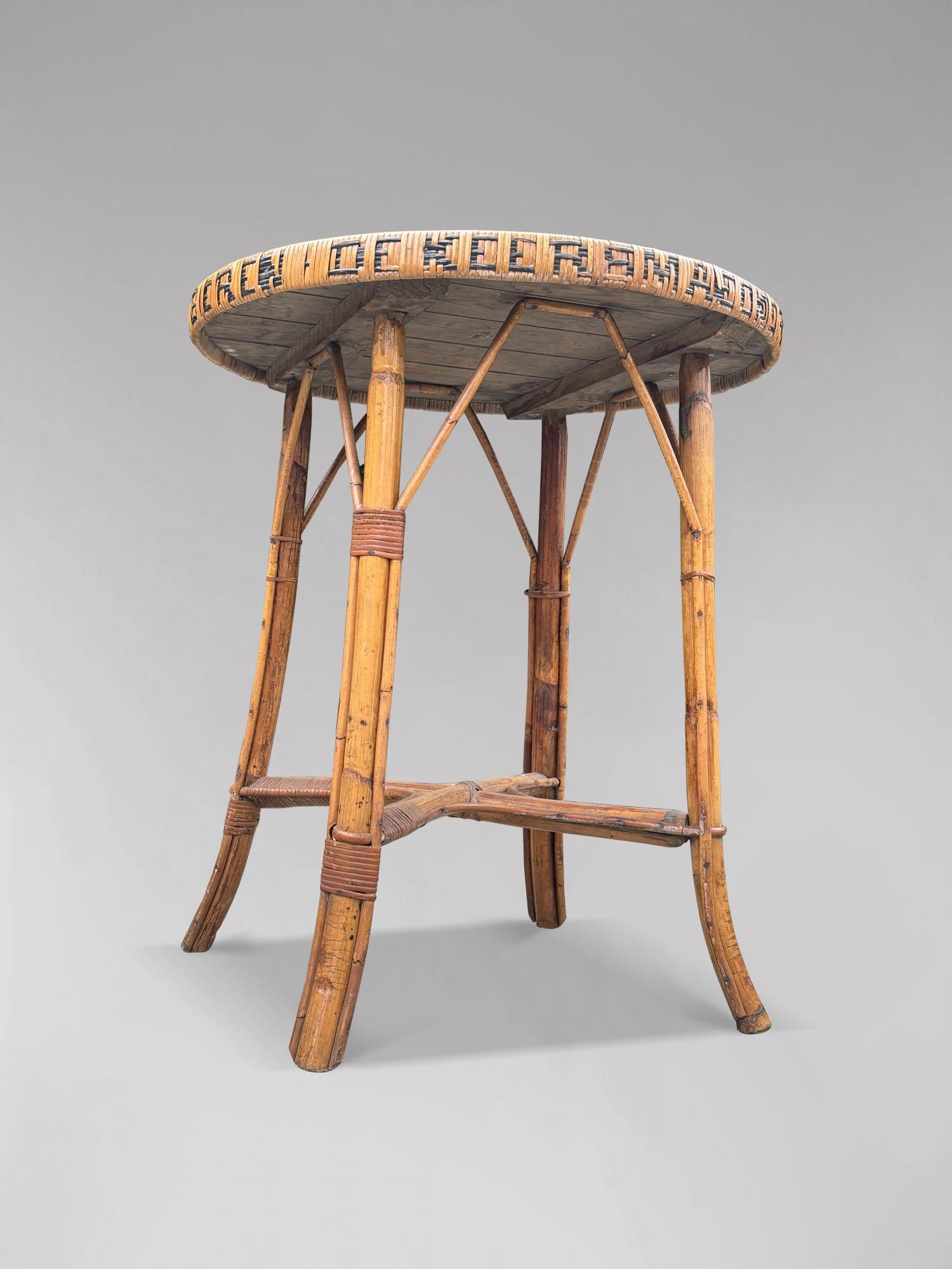 1970S BELGIAN BAMBOO & RATTAN BISTRO TABLE
