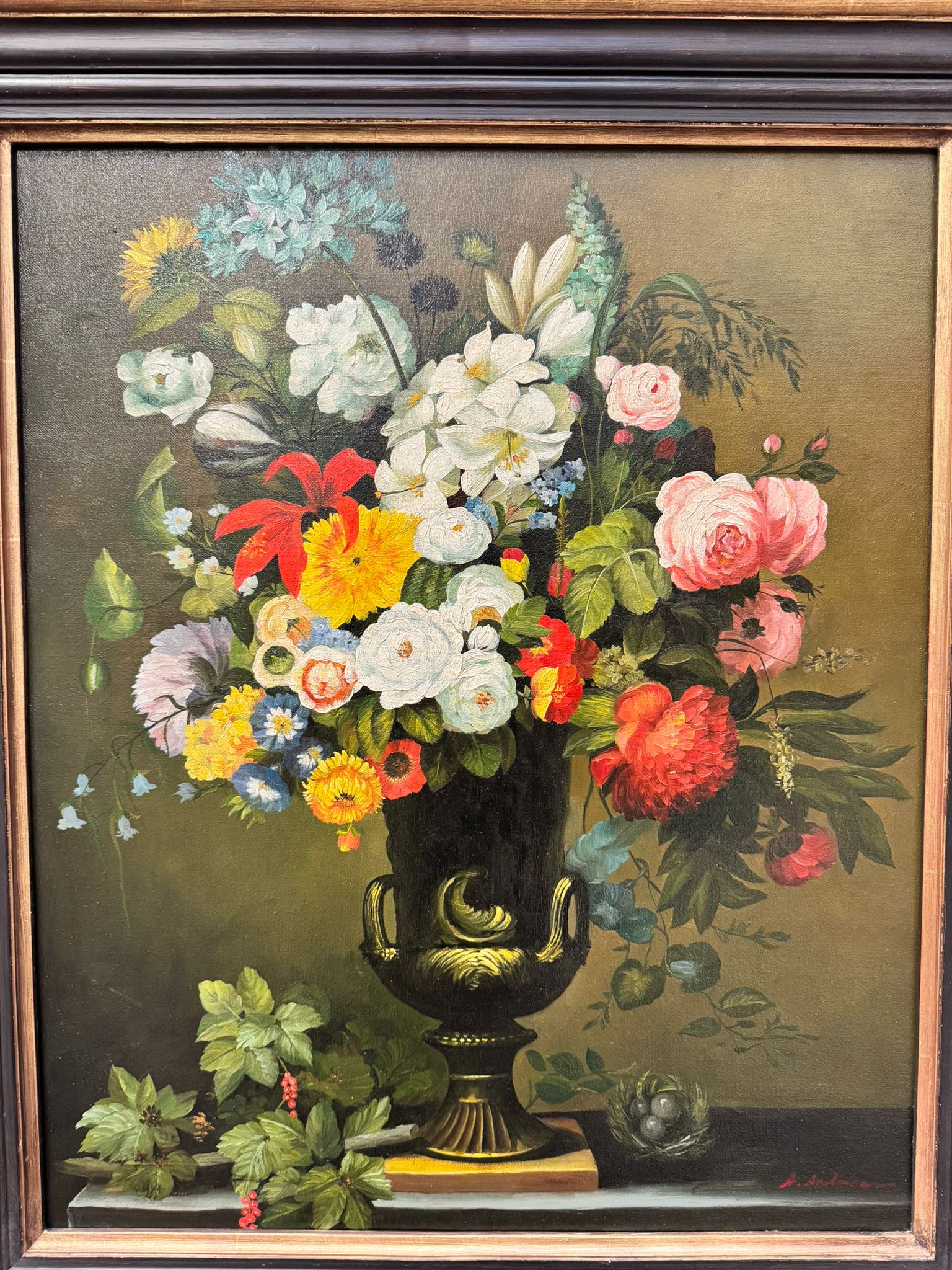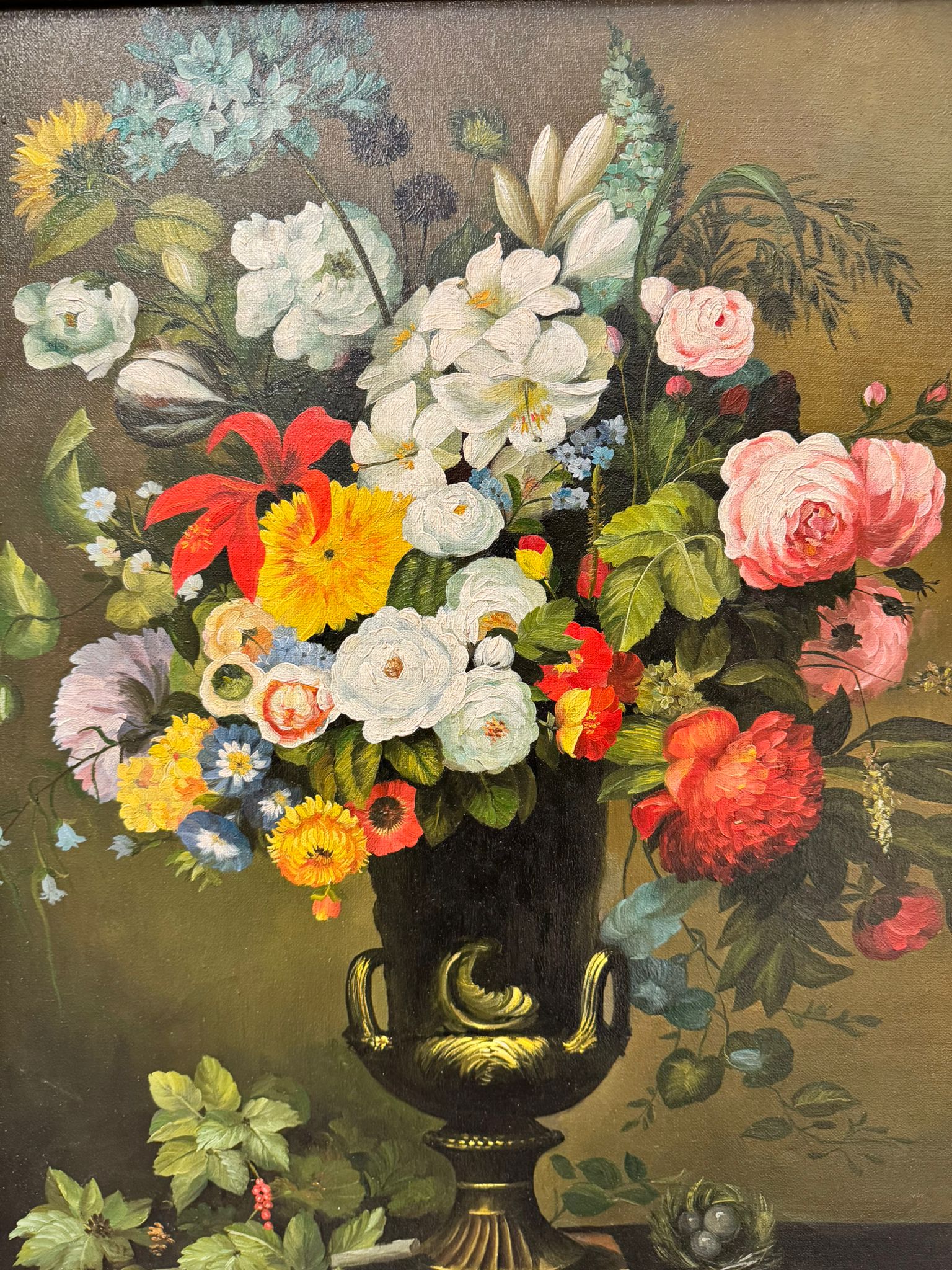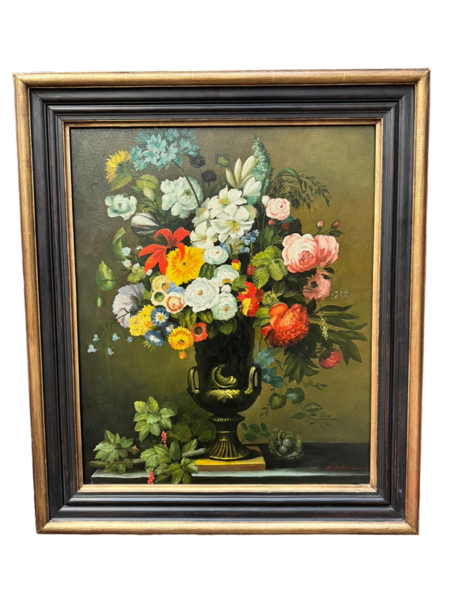 20THC SUPERB SIGNED LARGE OIL PAINTING STILL LIFE OF FLOWERS DECORATIVE FRAMED