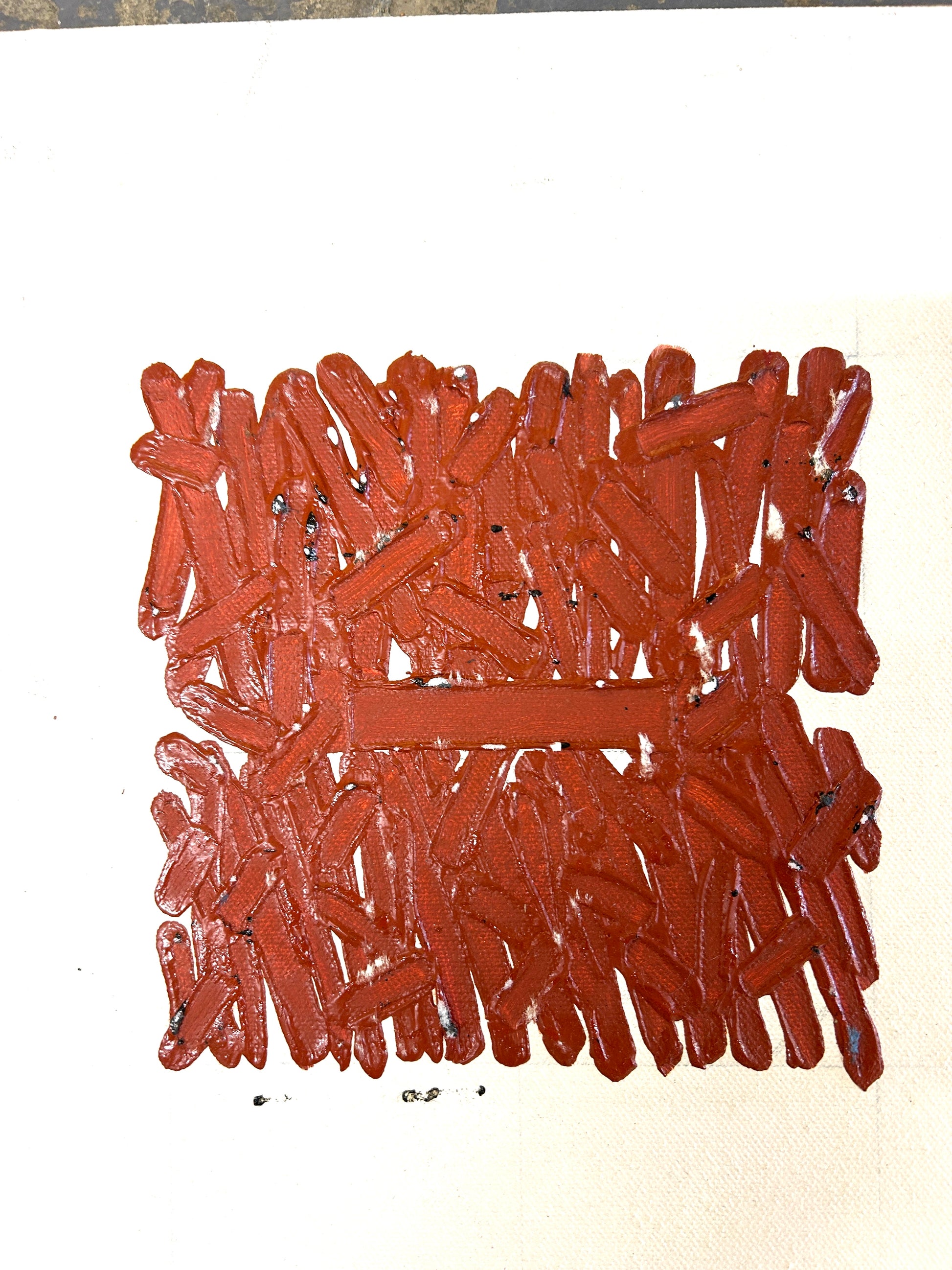 A 1970/80s textural composition that reminds us of a bit of Jasper Johns from the same period. A good-sized interesting painting.