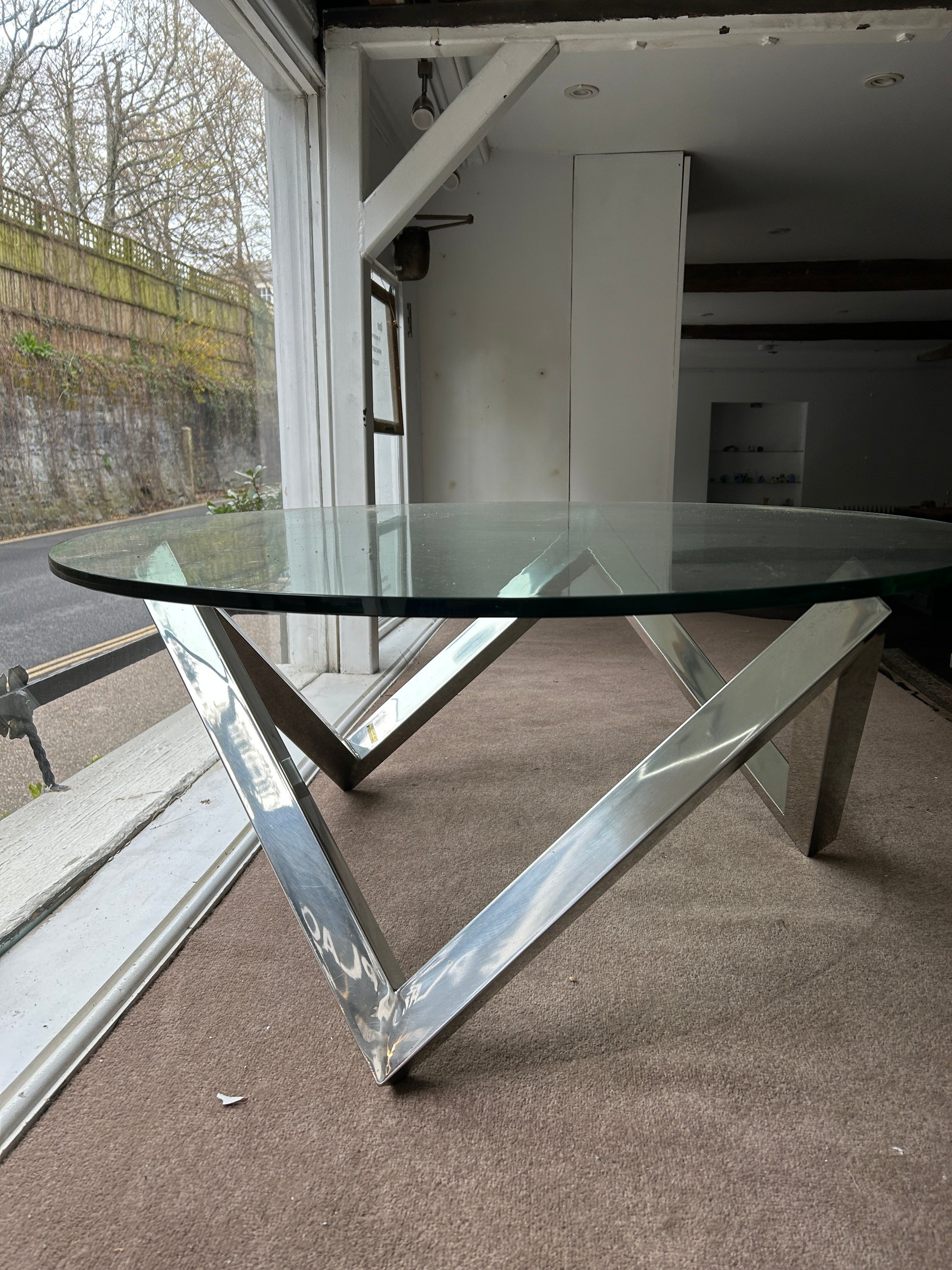 Andrew Martin Glass and Steel Zig Zag Glass Coffee Table