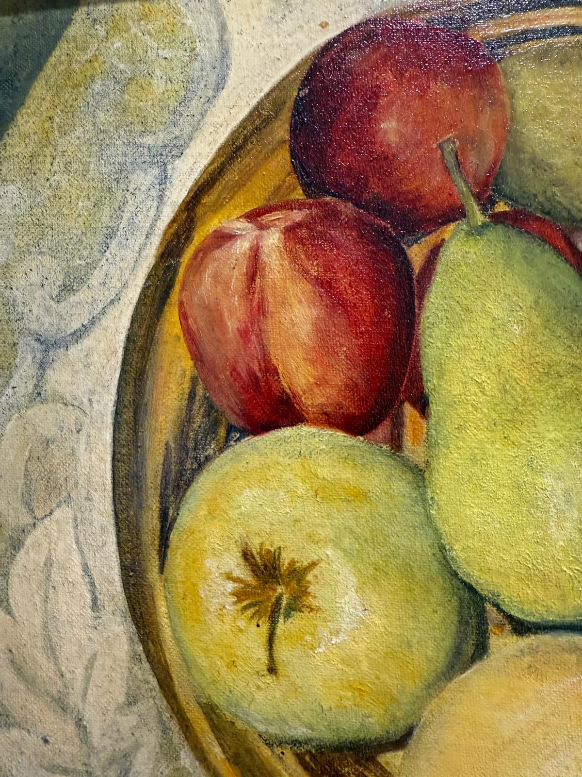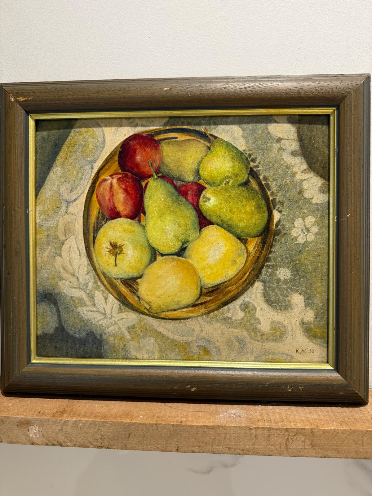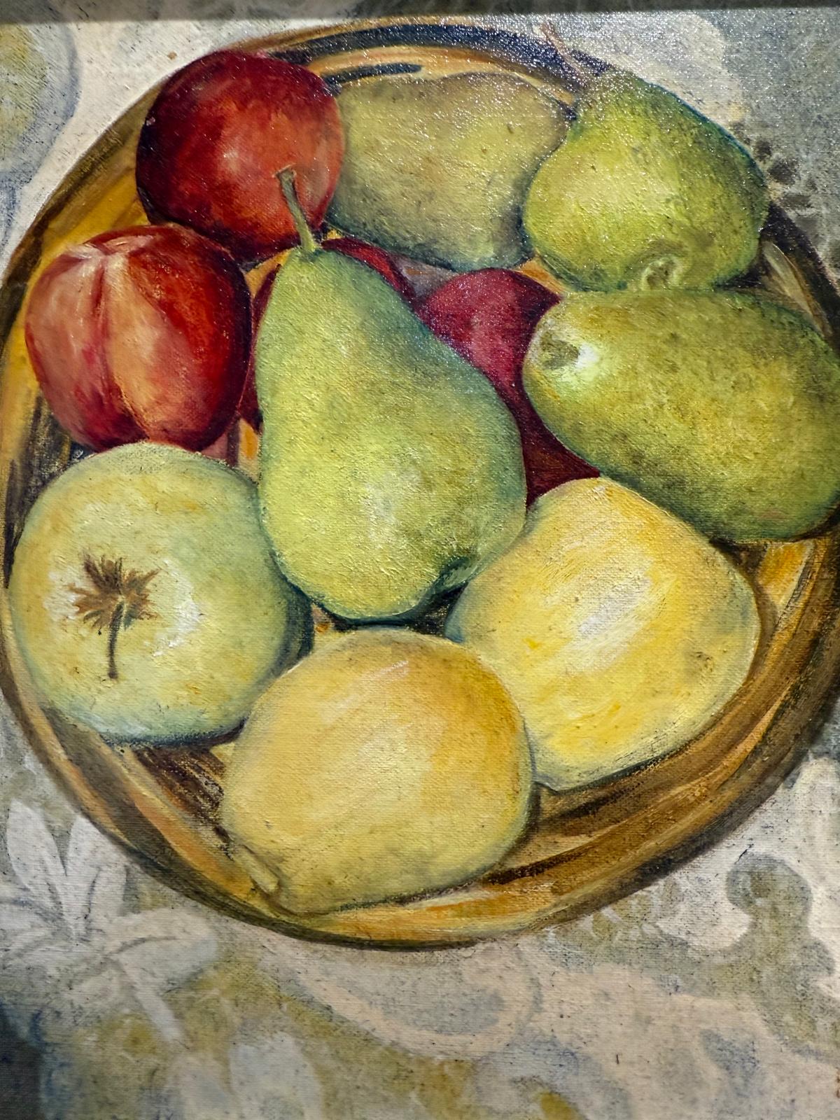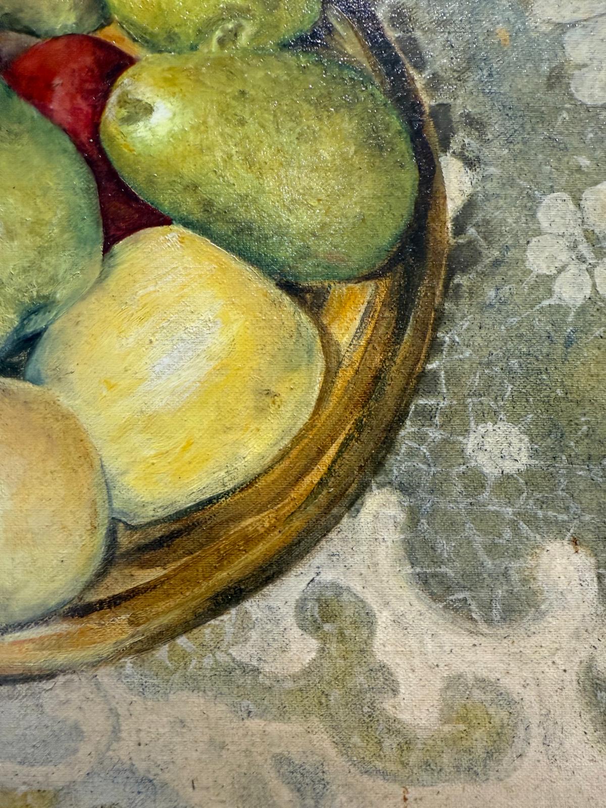 Apples and Pears Still Life Framed Oil on Board Late 20th Century