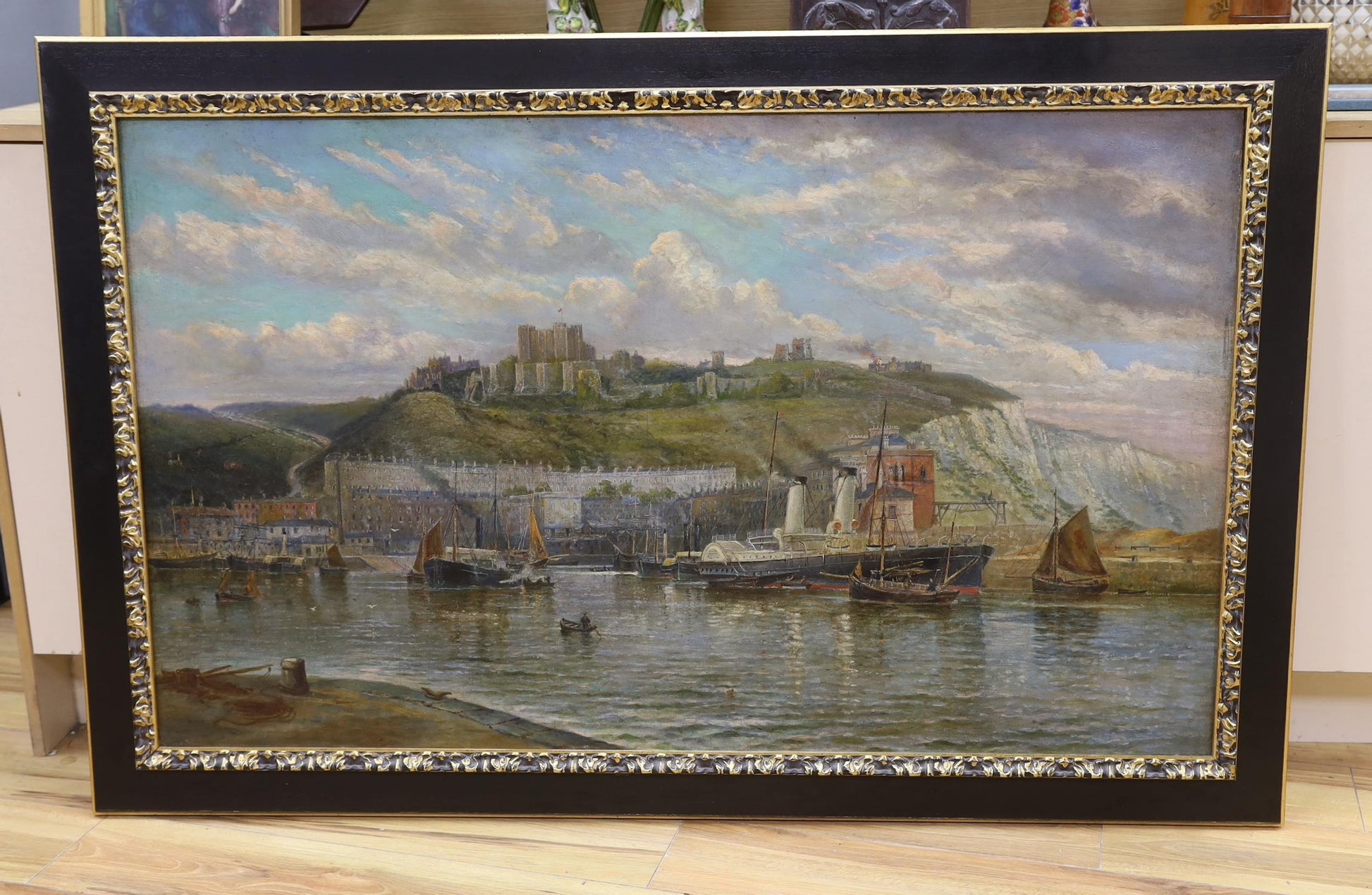 An interesting large oil on canvas of Dover Harbour with the Castle in view above, we have attributed this to John Gendall 1790 to 1865.
