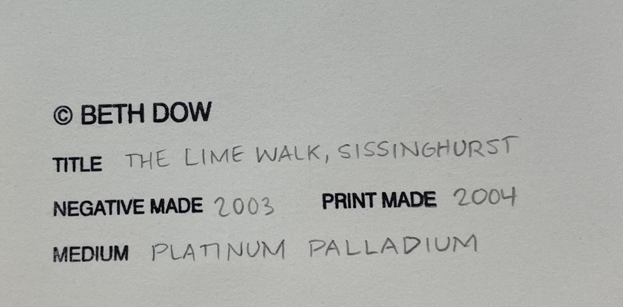 Platinum-palladium print, printed 2004, signed in pencil recto and verso, copyright stamped with print details annotated in pencil on verso.