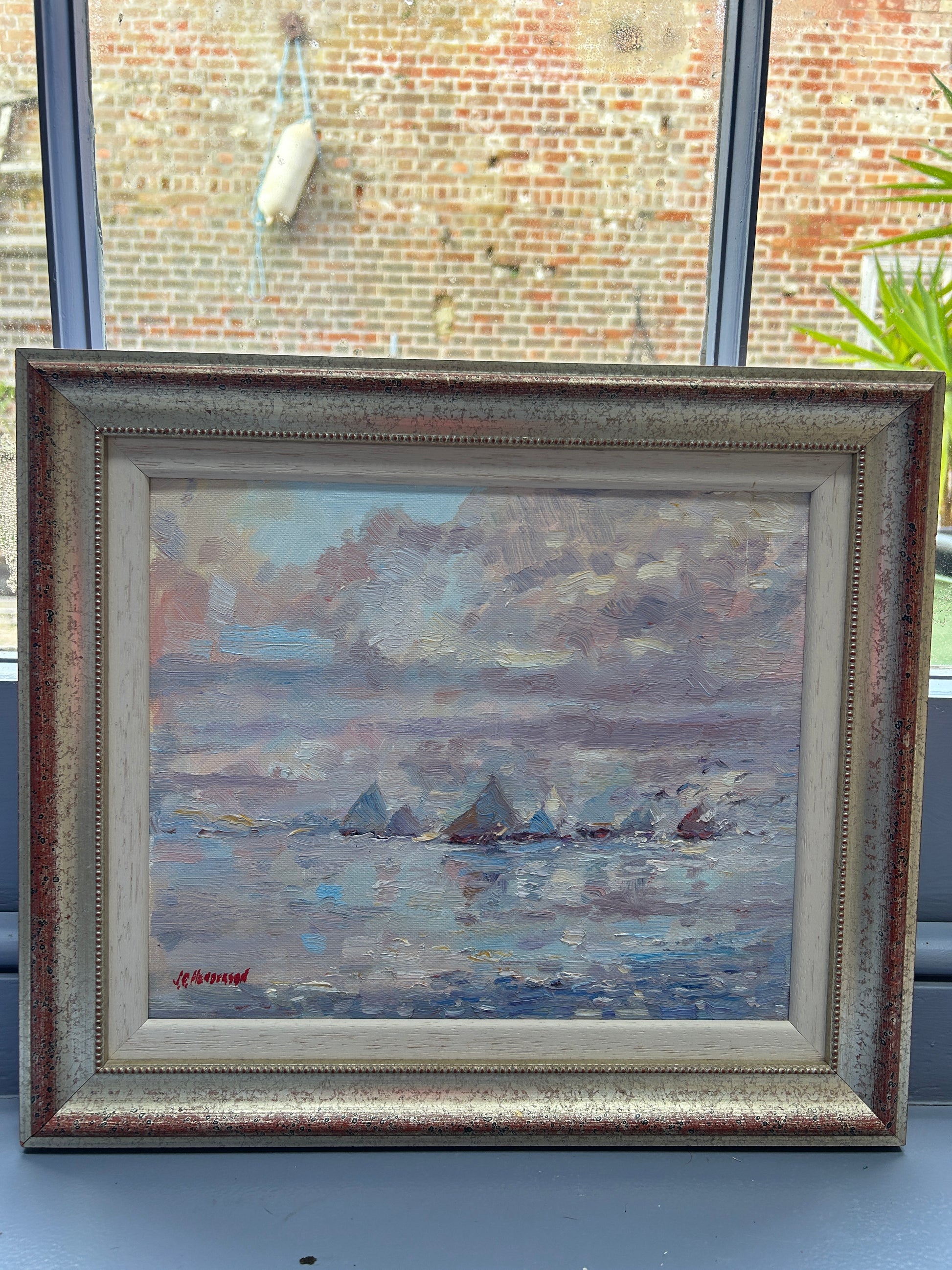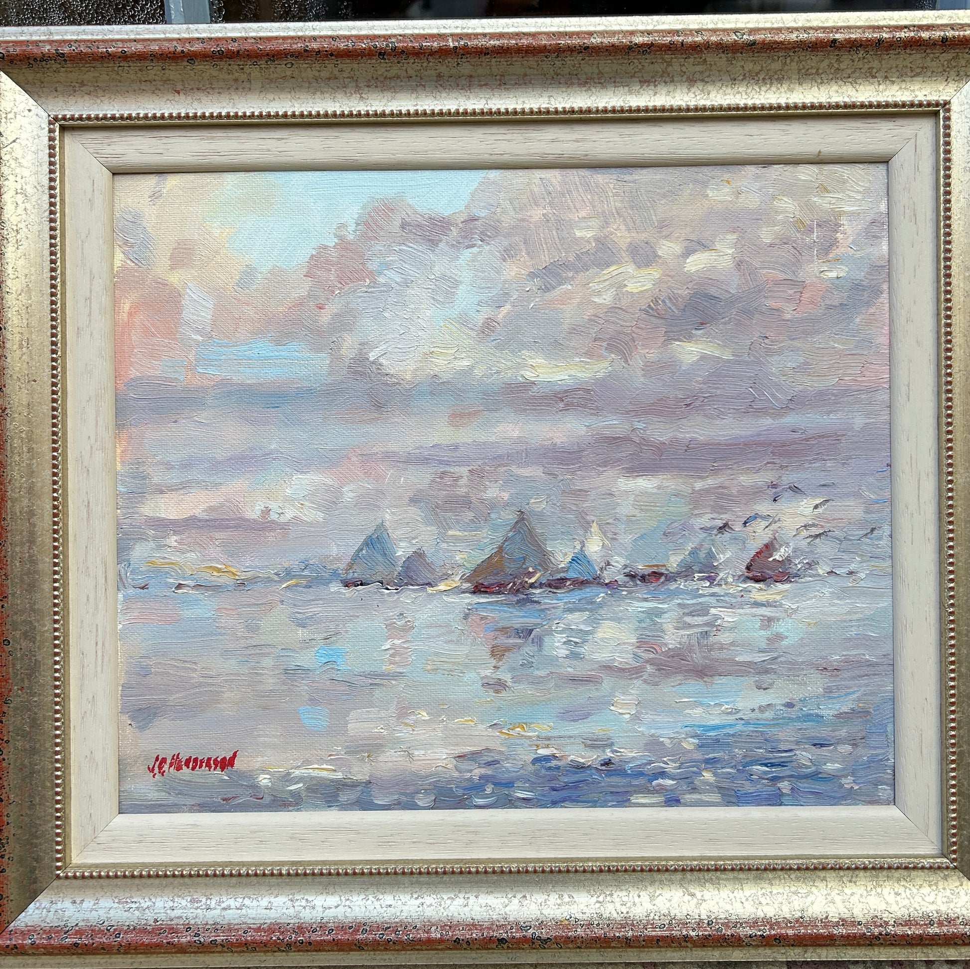 Charming oil on canvas "Sails" by the well listed art JD Henderson.