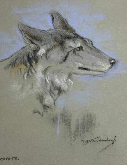 Selling here is an original pastel by Raymond John Vandenburgh depicting a coyote.