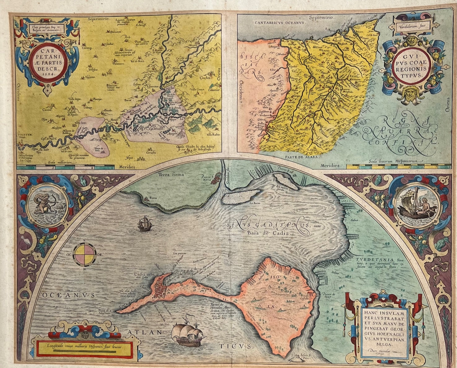 Carpetaniae Partis Descr. [on sheet with] Vardusorum, sive Guipuscoae Regionis Typus [and] Hanc Insulam Perlustrabat, et sua manu depingebat Georgius Hoefnaglius Antverpian. Belga. 1584.