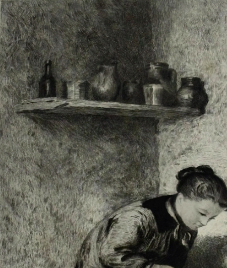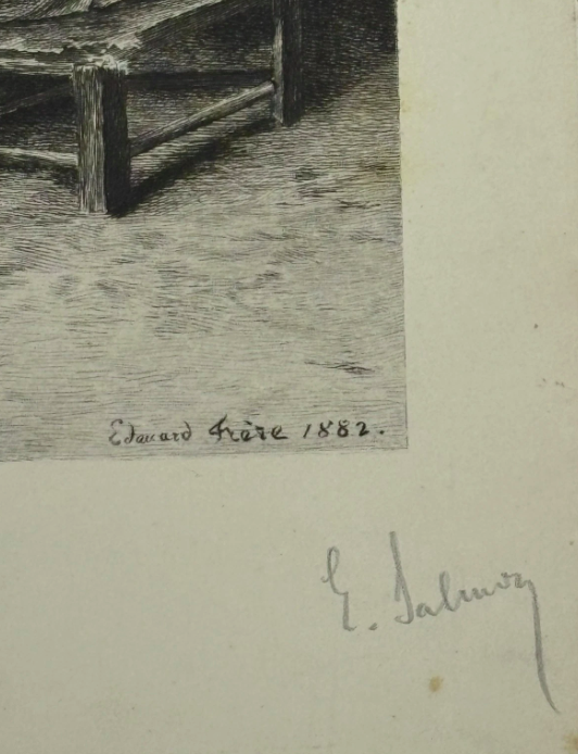 Selling here is an original etching by Edouard Frere depicting a tender moment between mother and son.