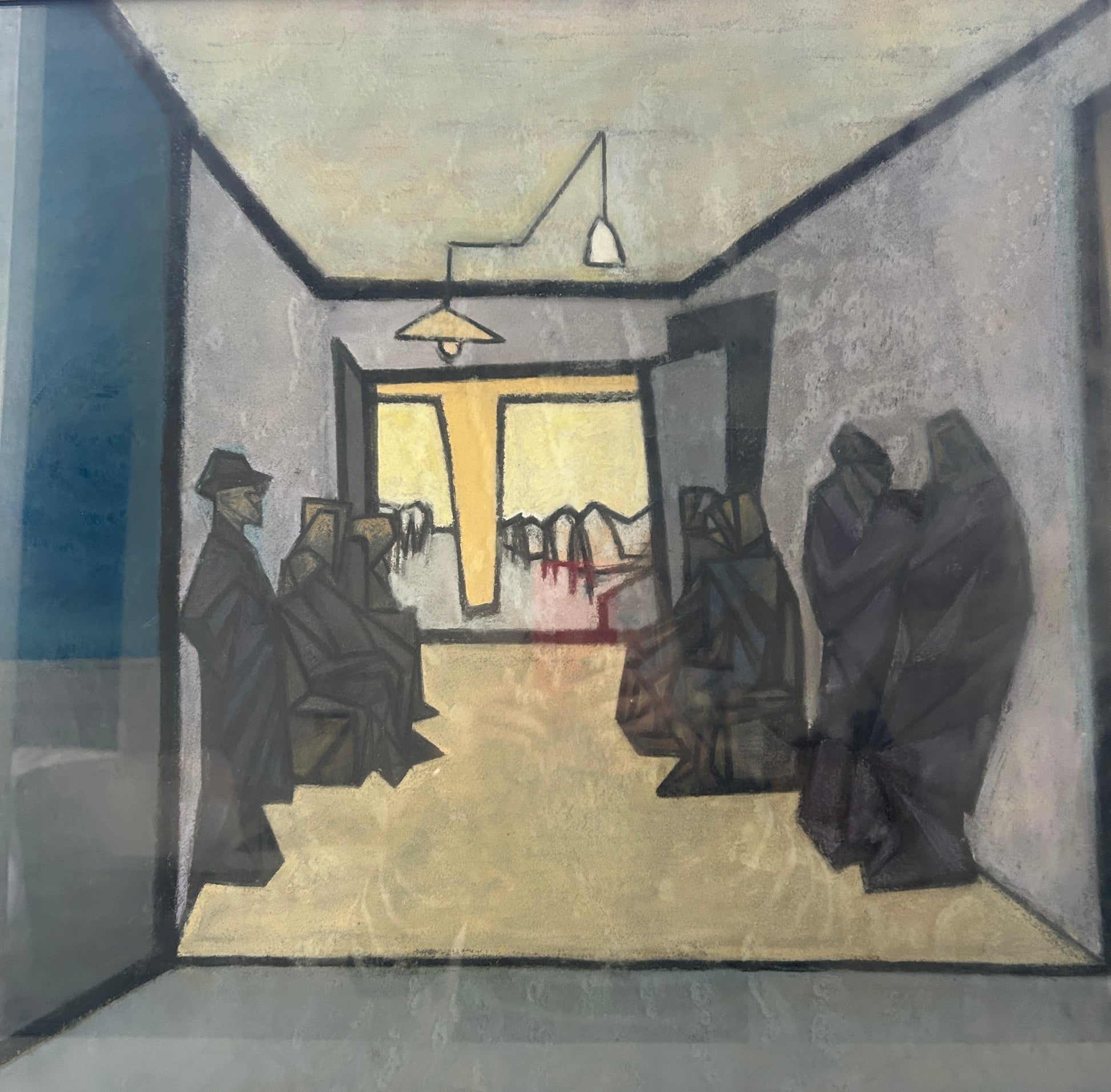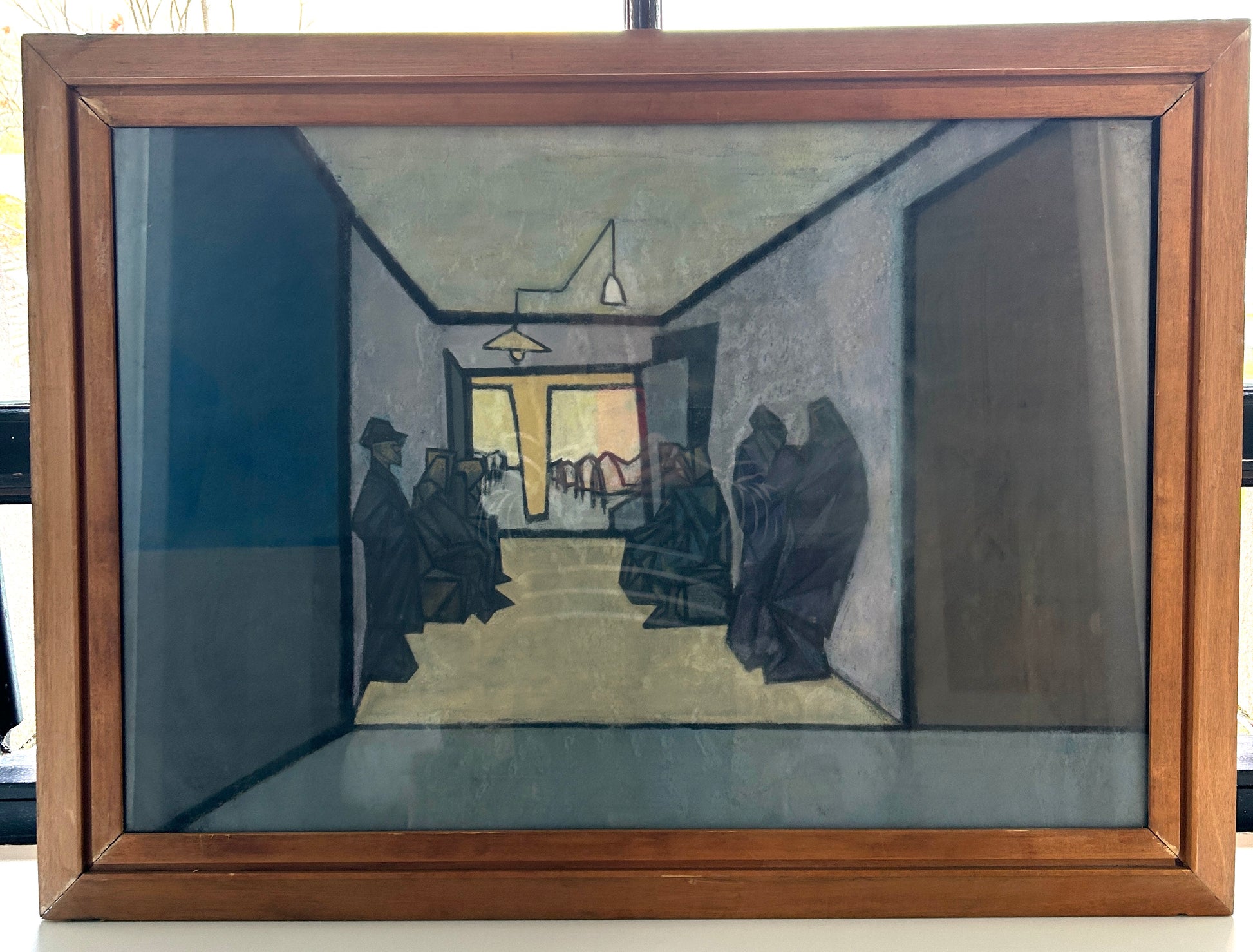 Interesting figurative abstract Glasgow School painting oil pastel circa 1940’s