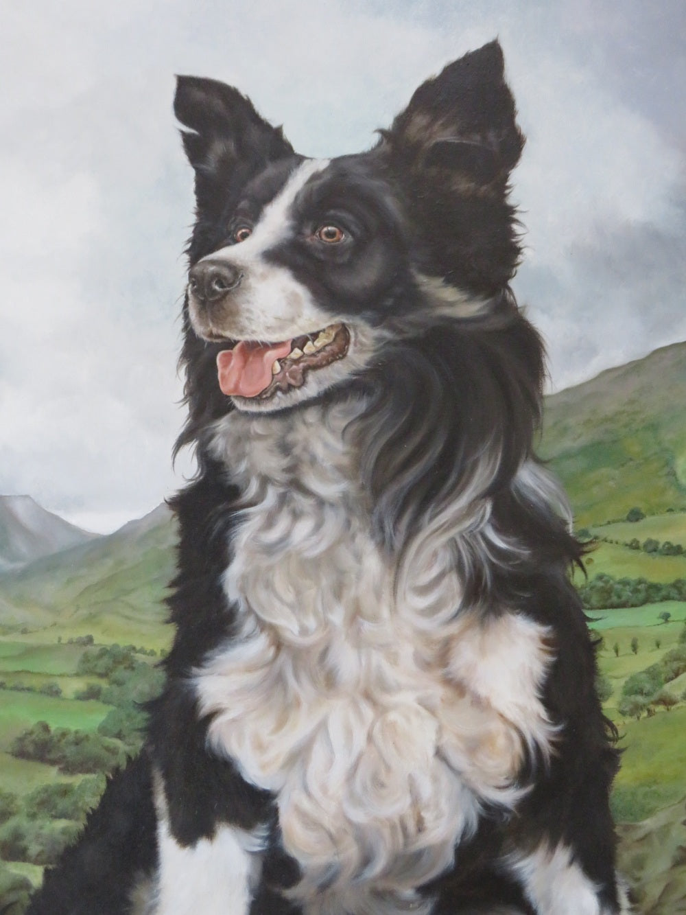 Beautifully painted mid century Oil on Canvas "Border Collie"