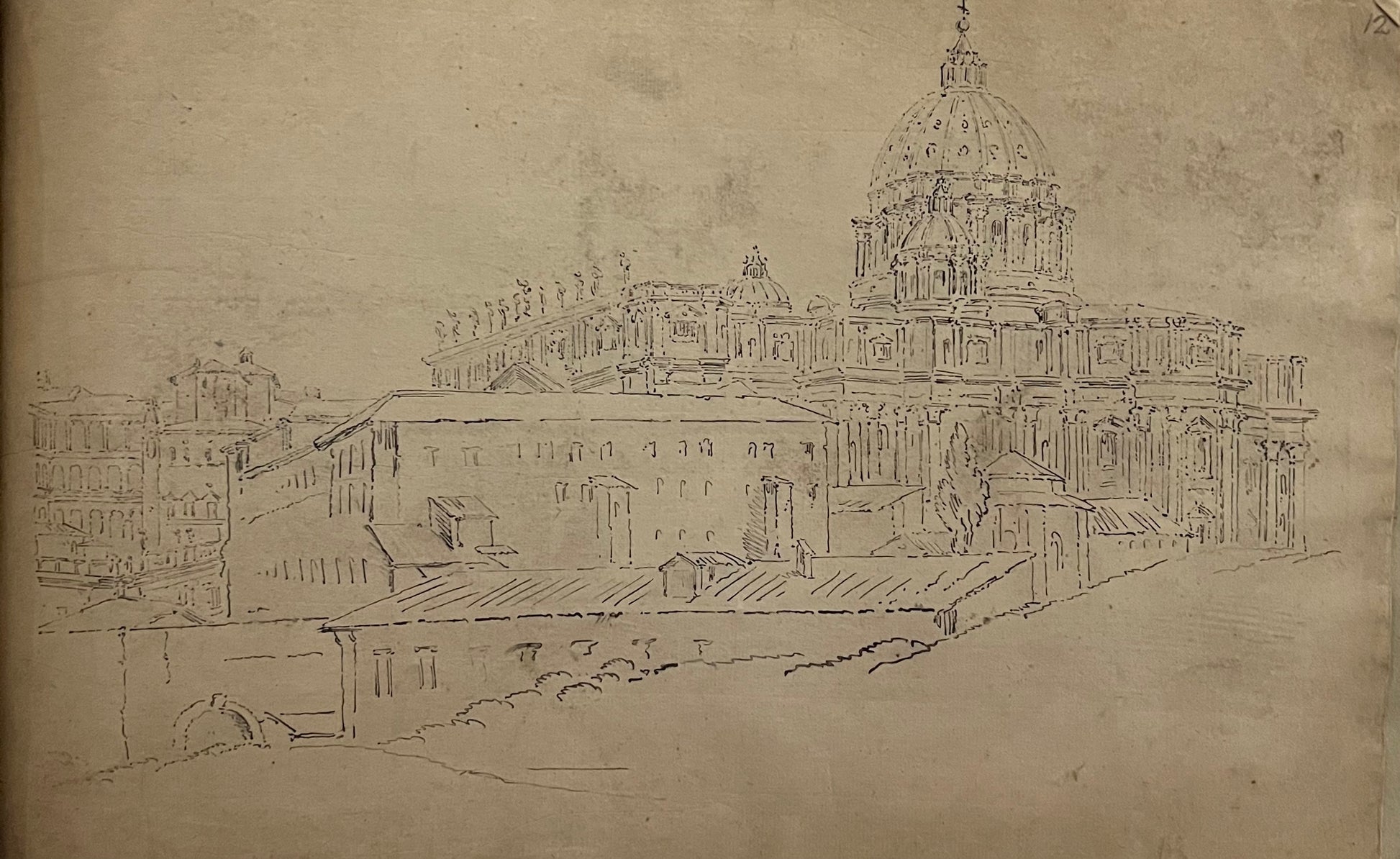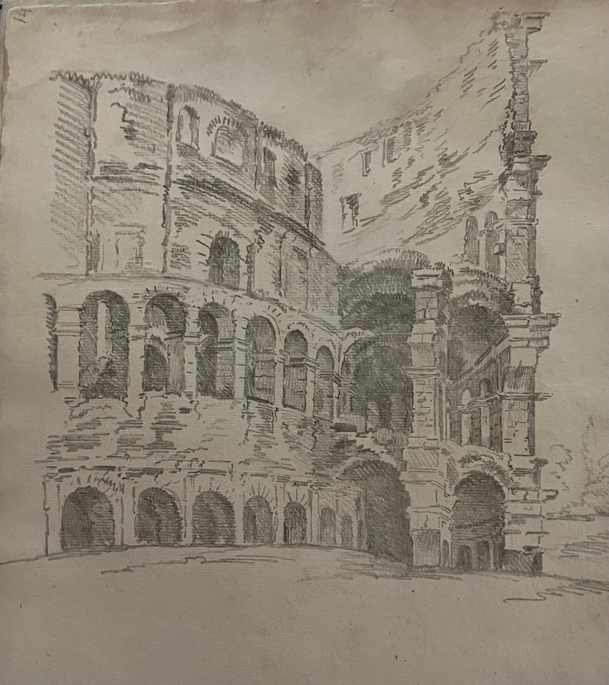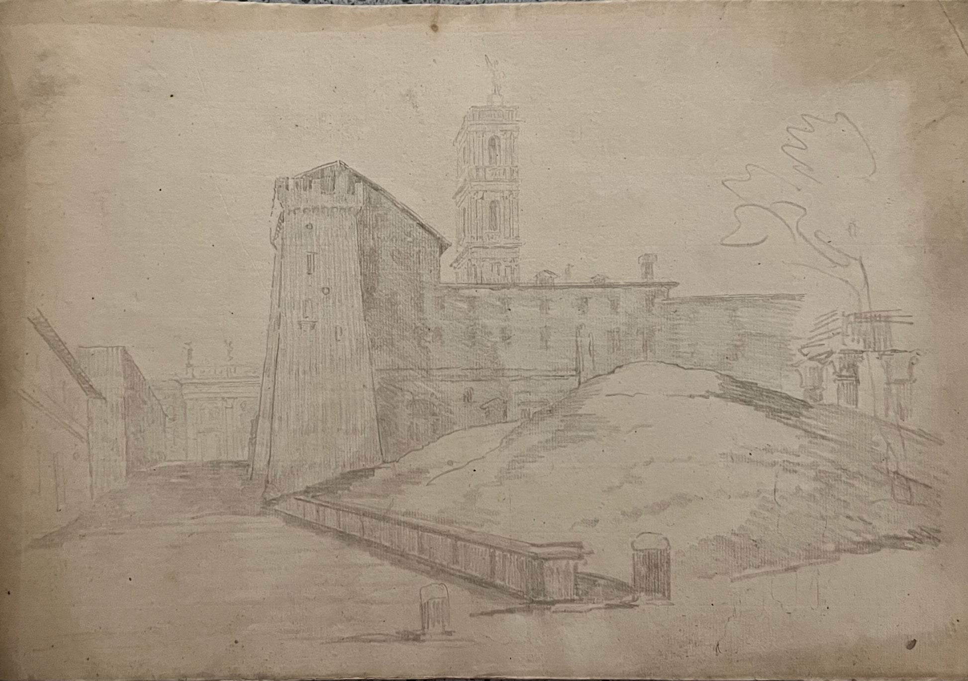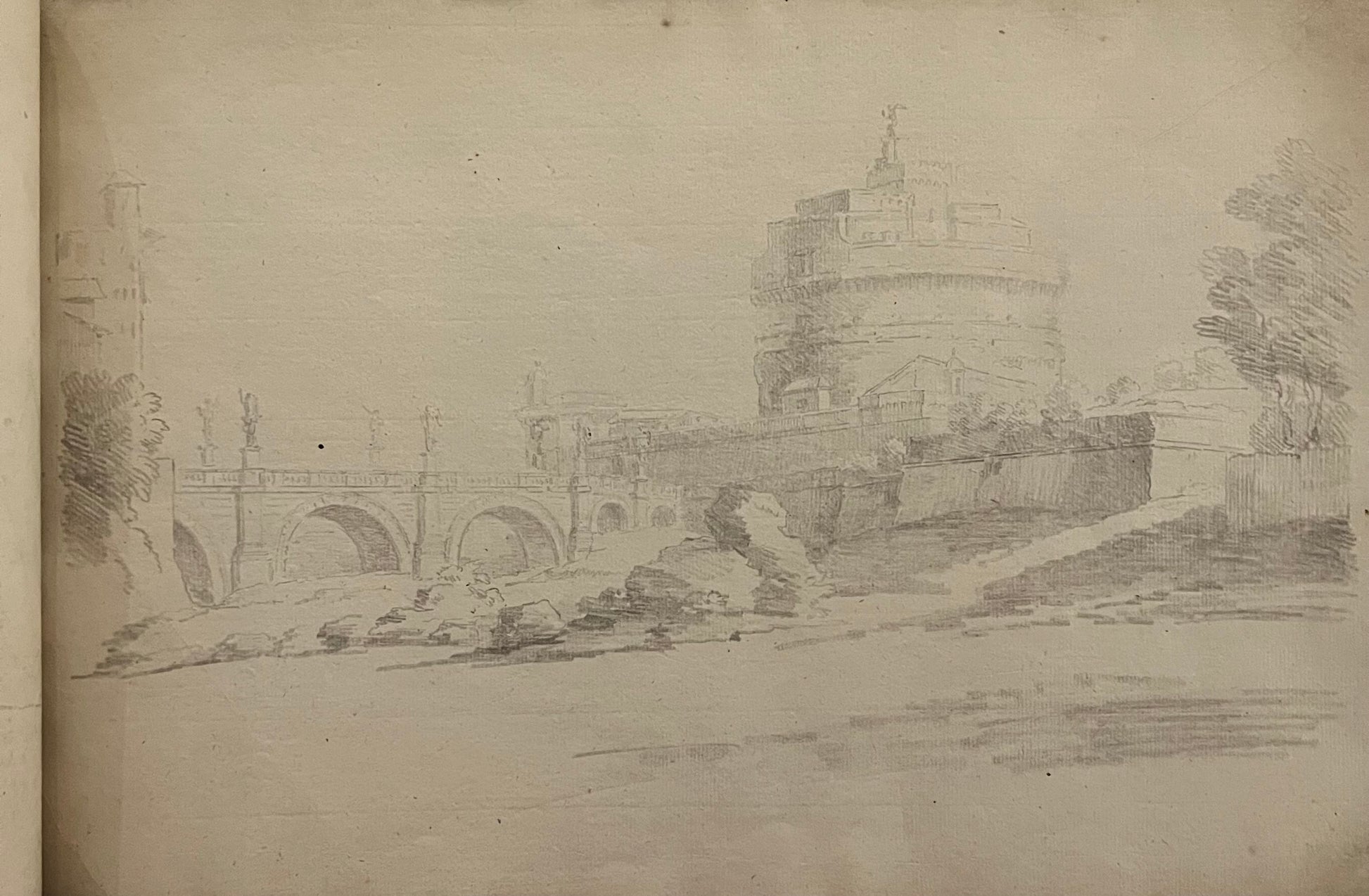 Late 18th century Folio Album of 14 chalk/pencil drawings Rome and surrounds.
