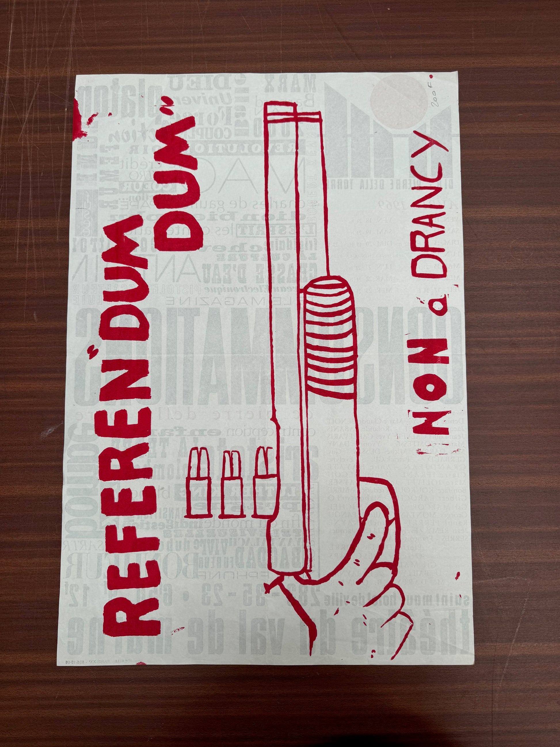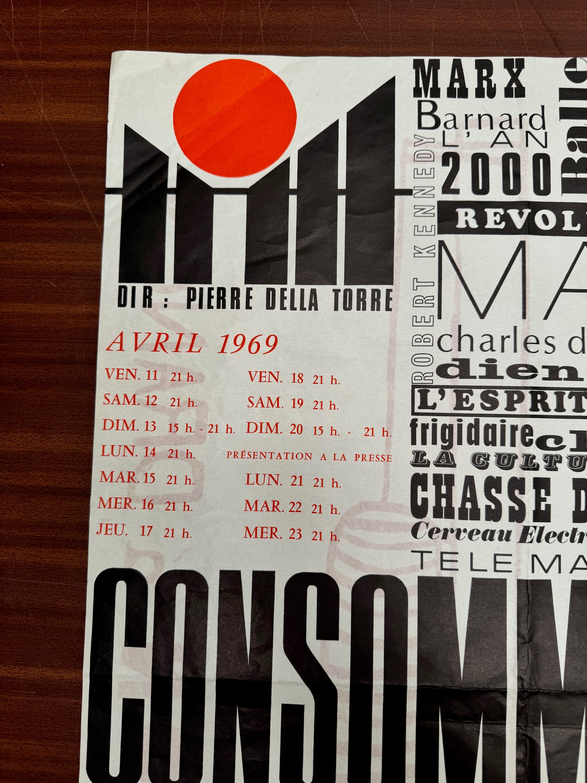 A well-sought after highly collectable double-sided French poster is the poster announcing the performance of the 1969 play 'L'Interdiction' by Armand Gatti at the Faculty of Law, Assas. This play told the story of the banning of his 1968 play 'The Passion of General Franco', which was to be performed under the title 'The Passion in purple, yellow and red'.