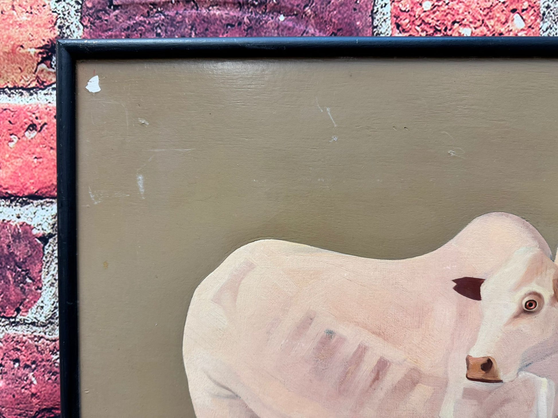 Oil on canvasboard, framed.