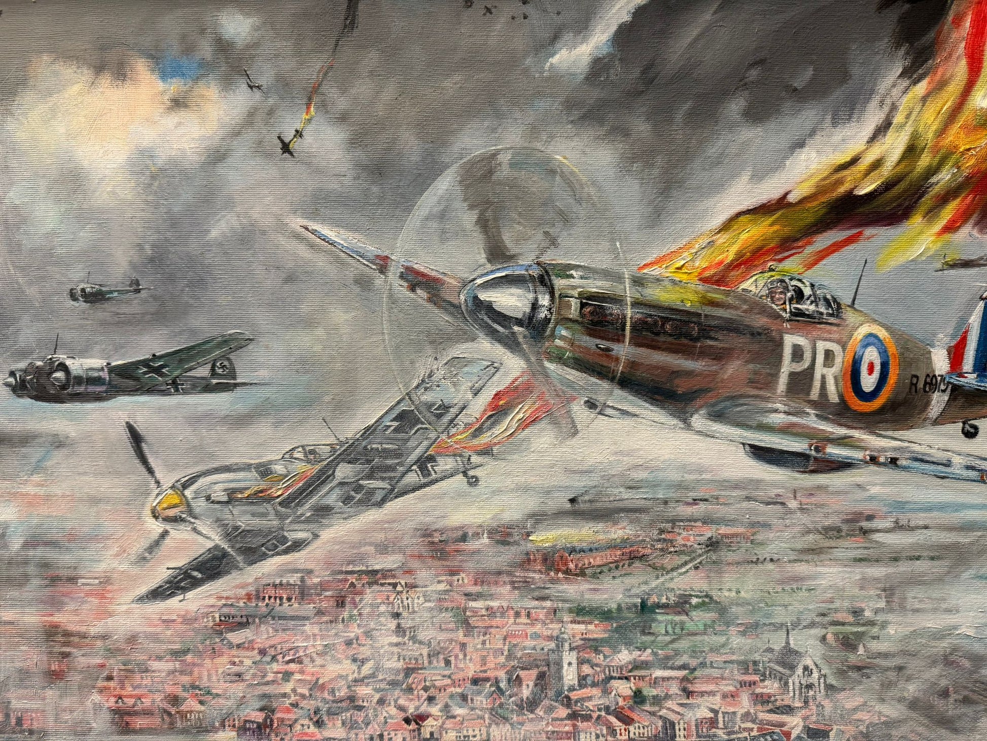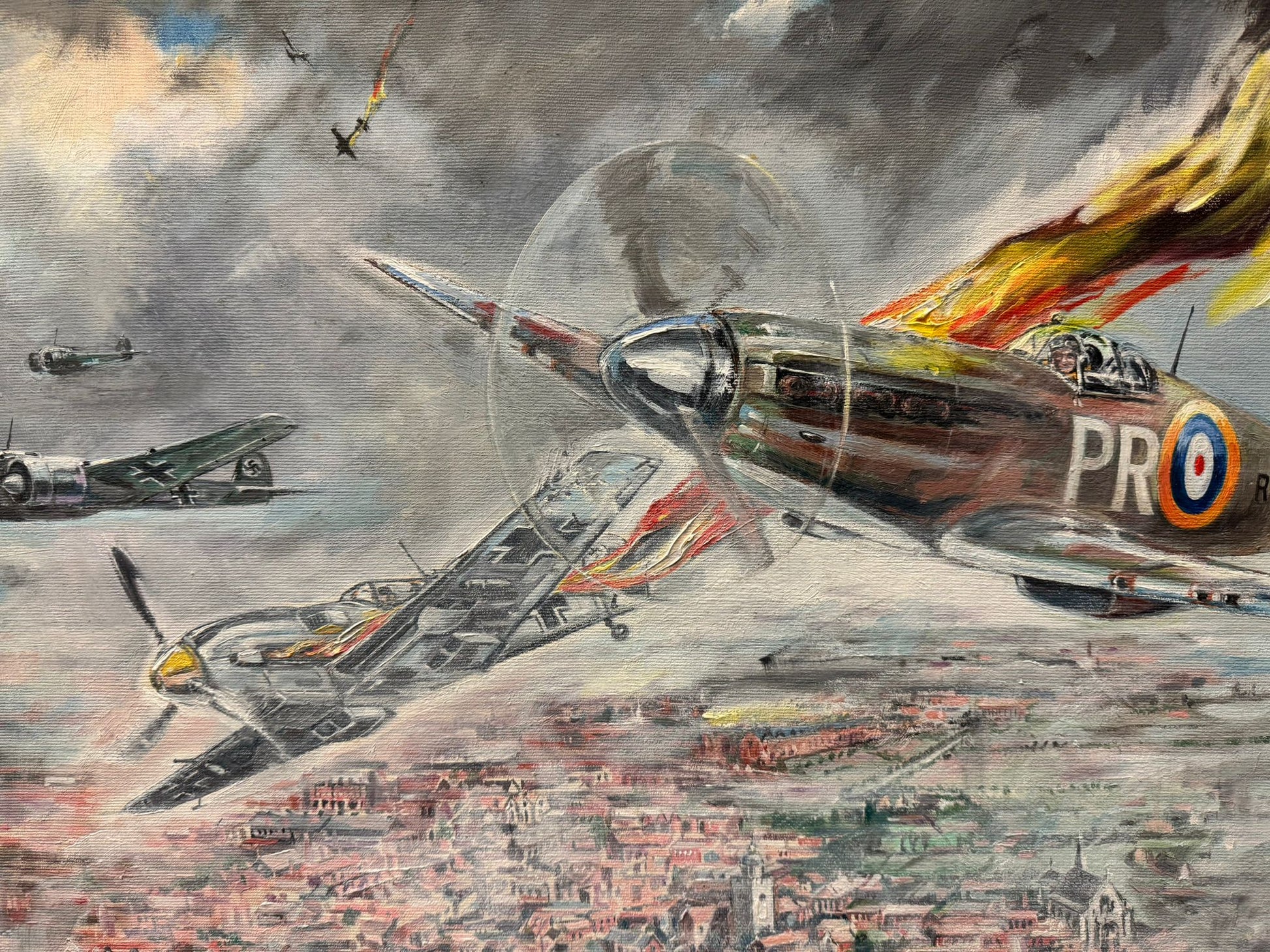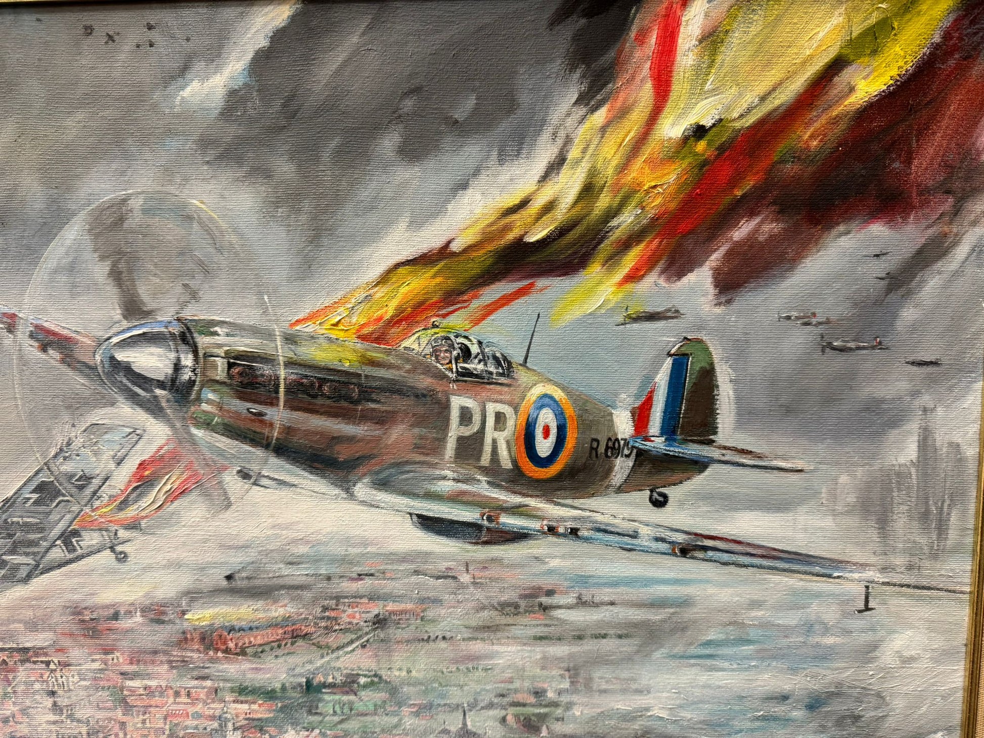 RALPH GILLIES COLE 1915-1994 ORIGINAL OIL PAINTING WW2 PLANES BATTLE SPITFIRE