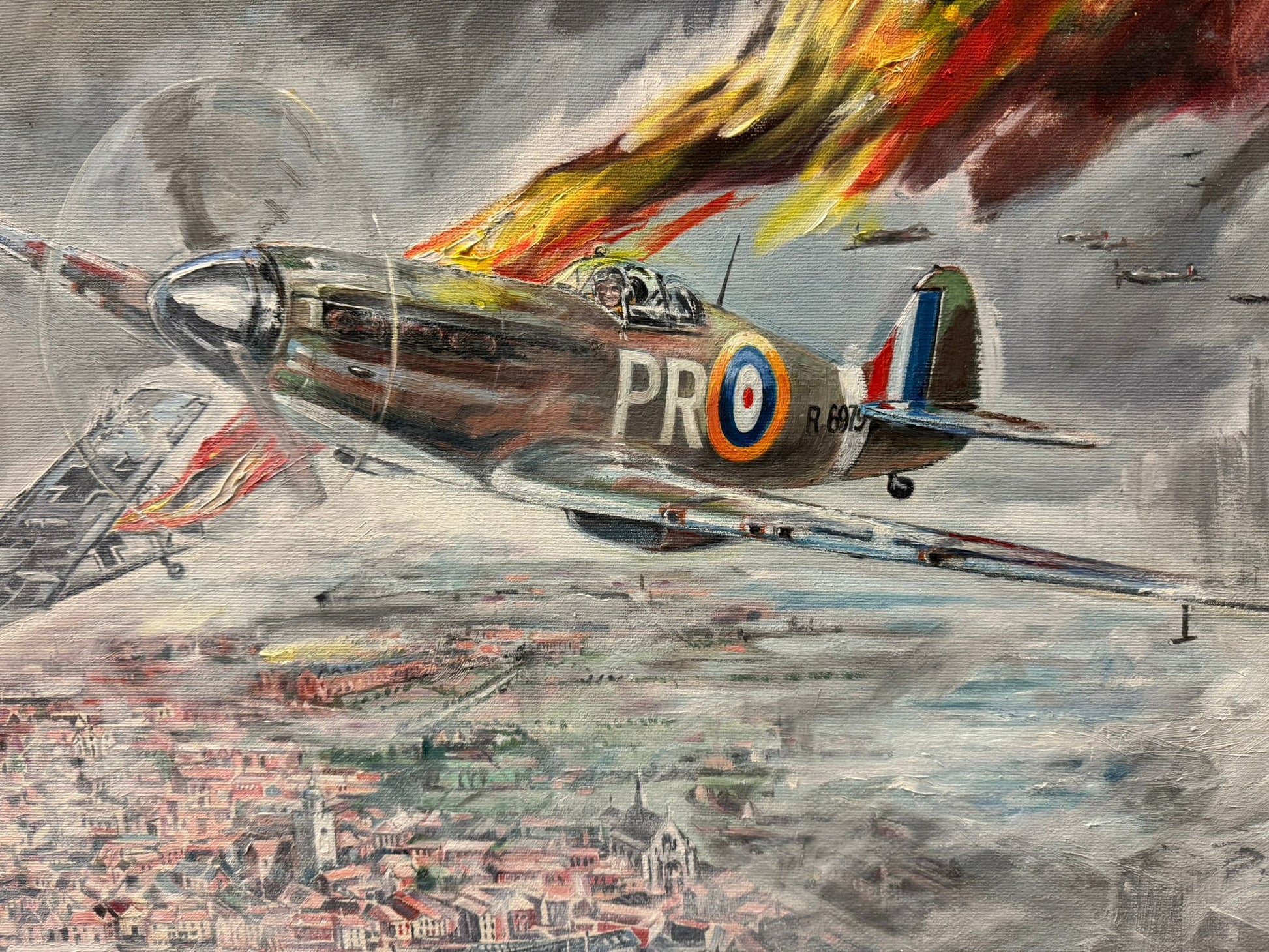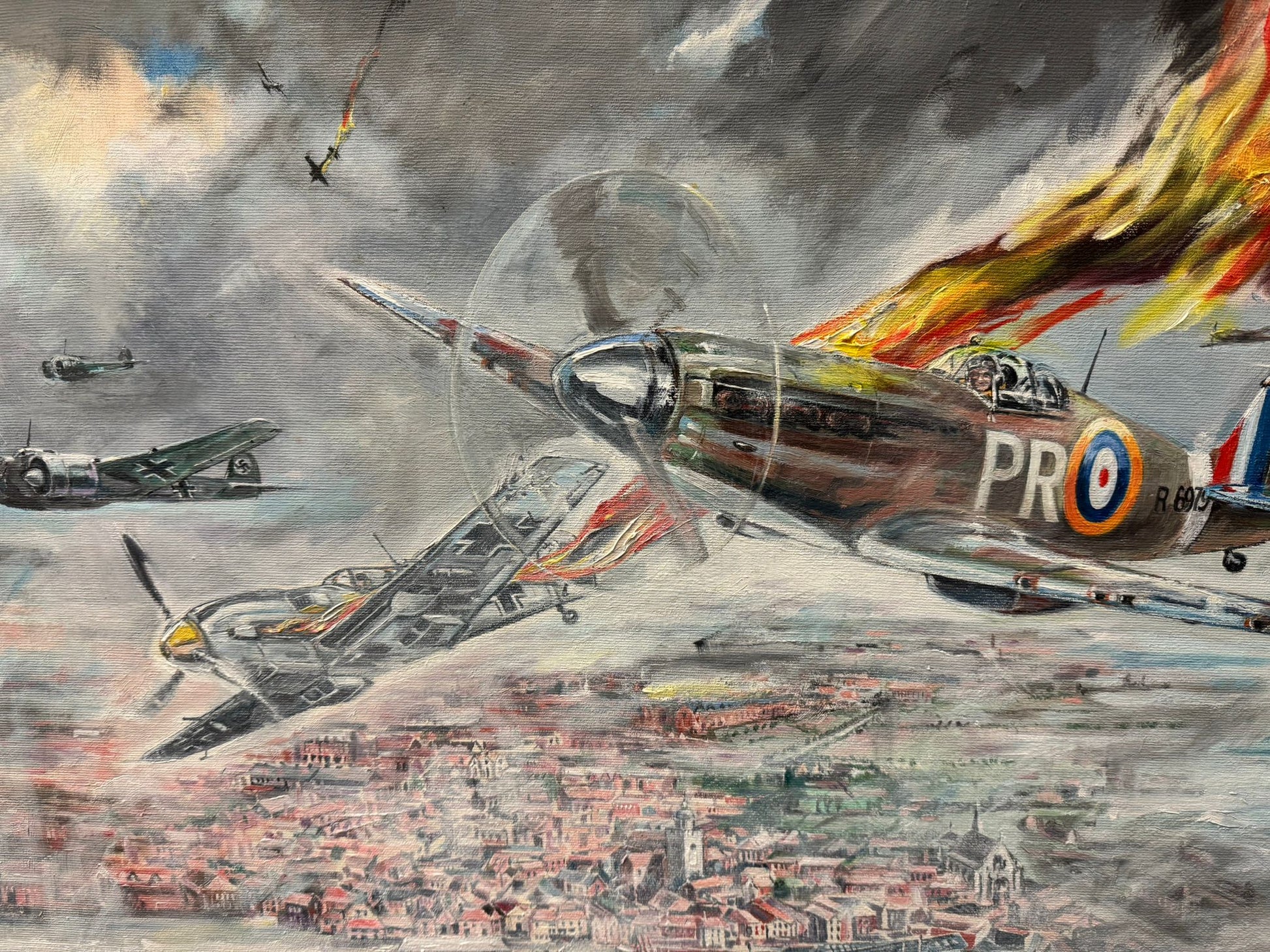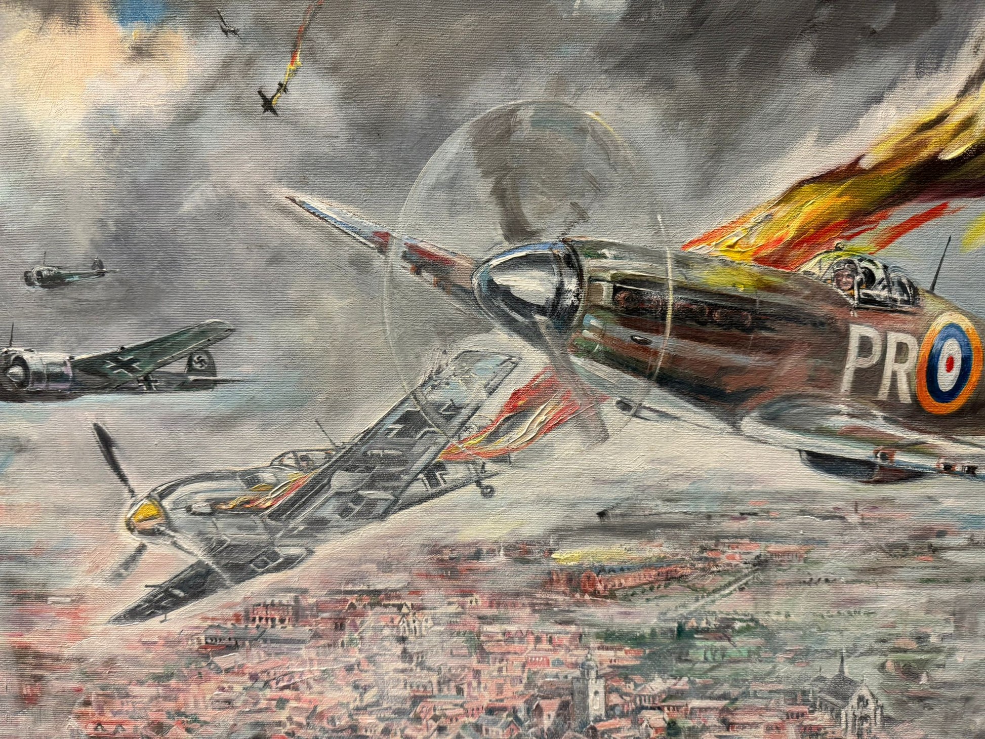 RALPH GILLIES COLE 1915-1994 ORIGINAL OIL PAINTING WW2 PLANES BATTLE SPITFIRE