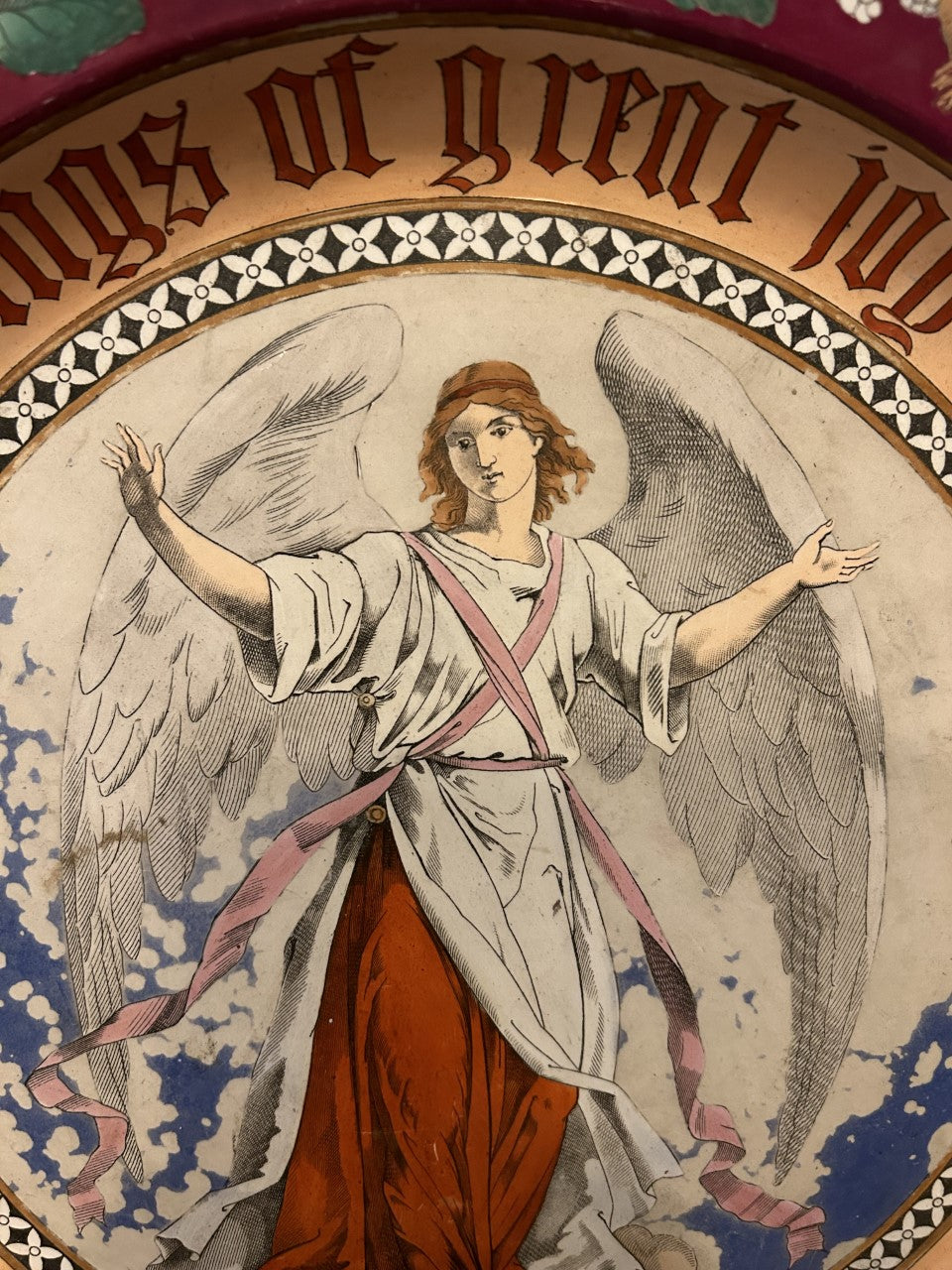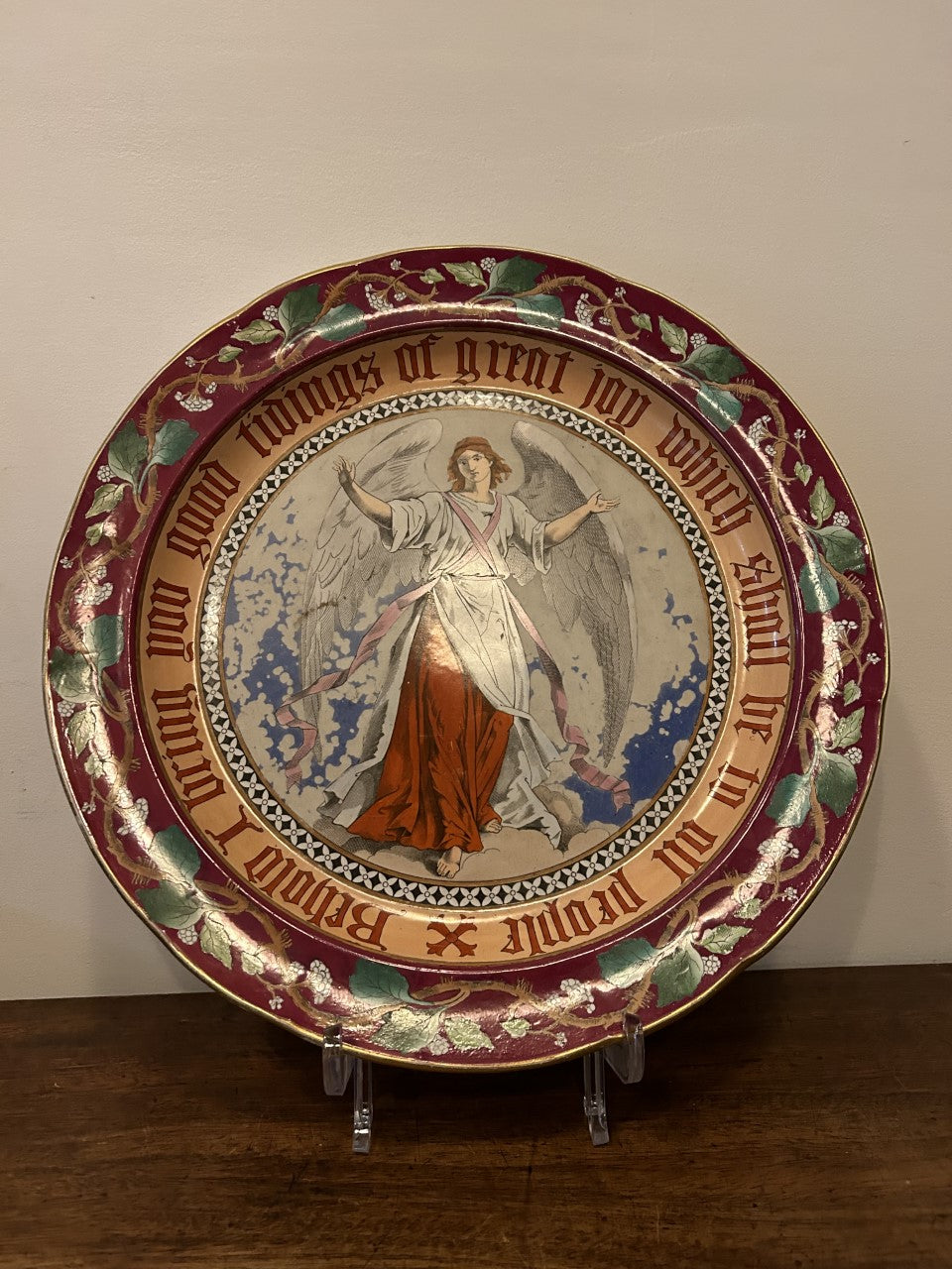 A very rare and early Copland large charger depicting an the Angel. The bible verse. "Behold I bring you good tidings of great joy which shall be to all people."