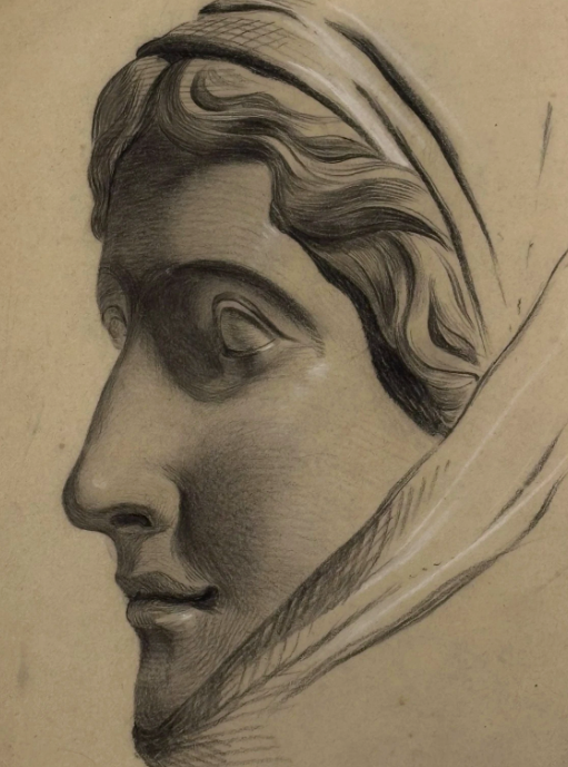 Sketch of Statue Visage Pencil on Paper