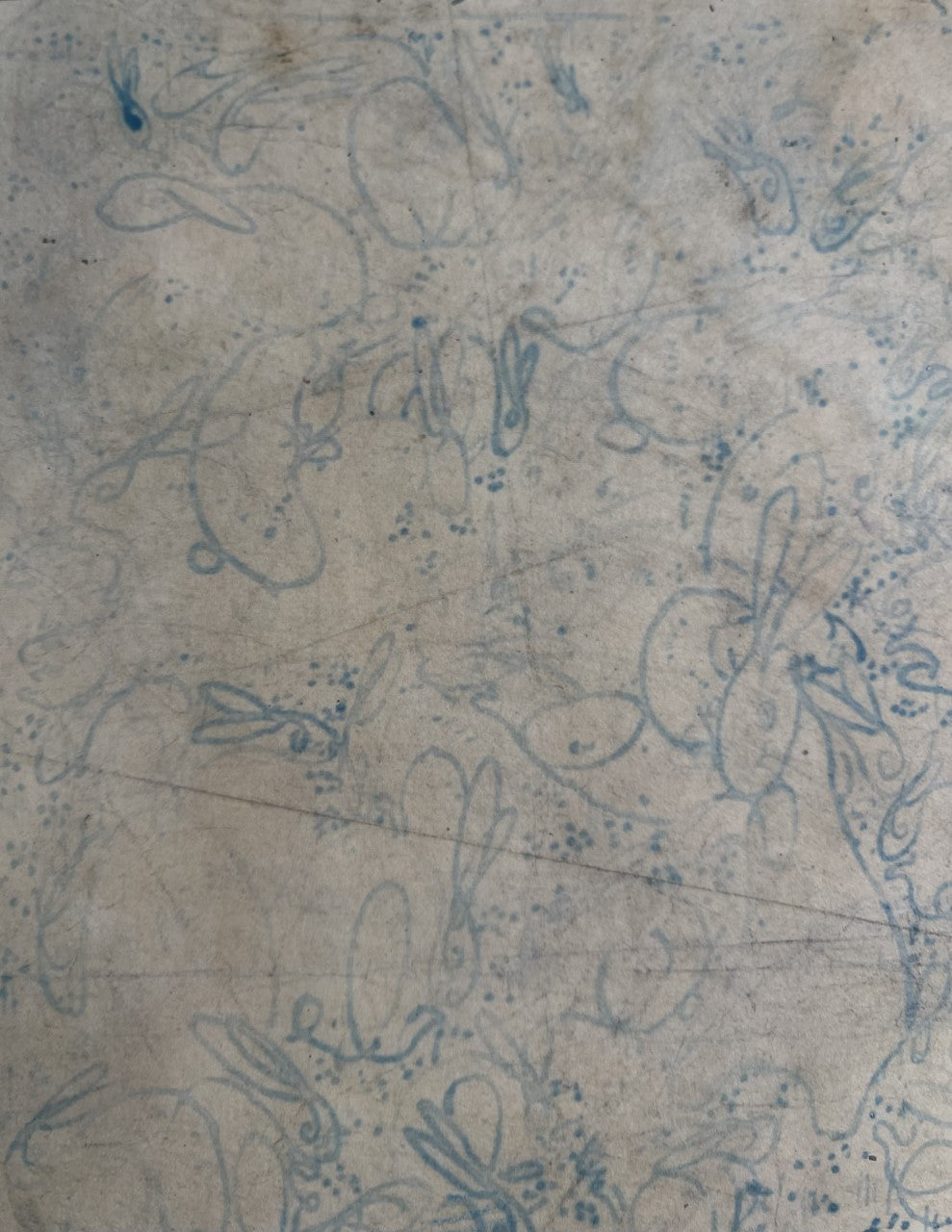 The drawing was used as the endpapers (and page 3) for Sir William Nicholson's famous 1922 edition of The Velveteen Rabbit by Margery Williams. The DNB notes that Nicholson's 'natural sympathy with children produced work of great charm such as... his illustrations for Margery Williams's The Velveteen Rabbit'.