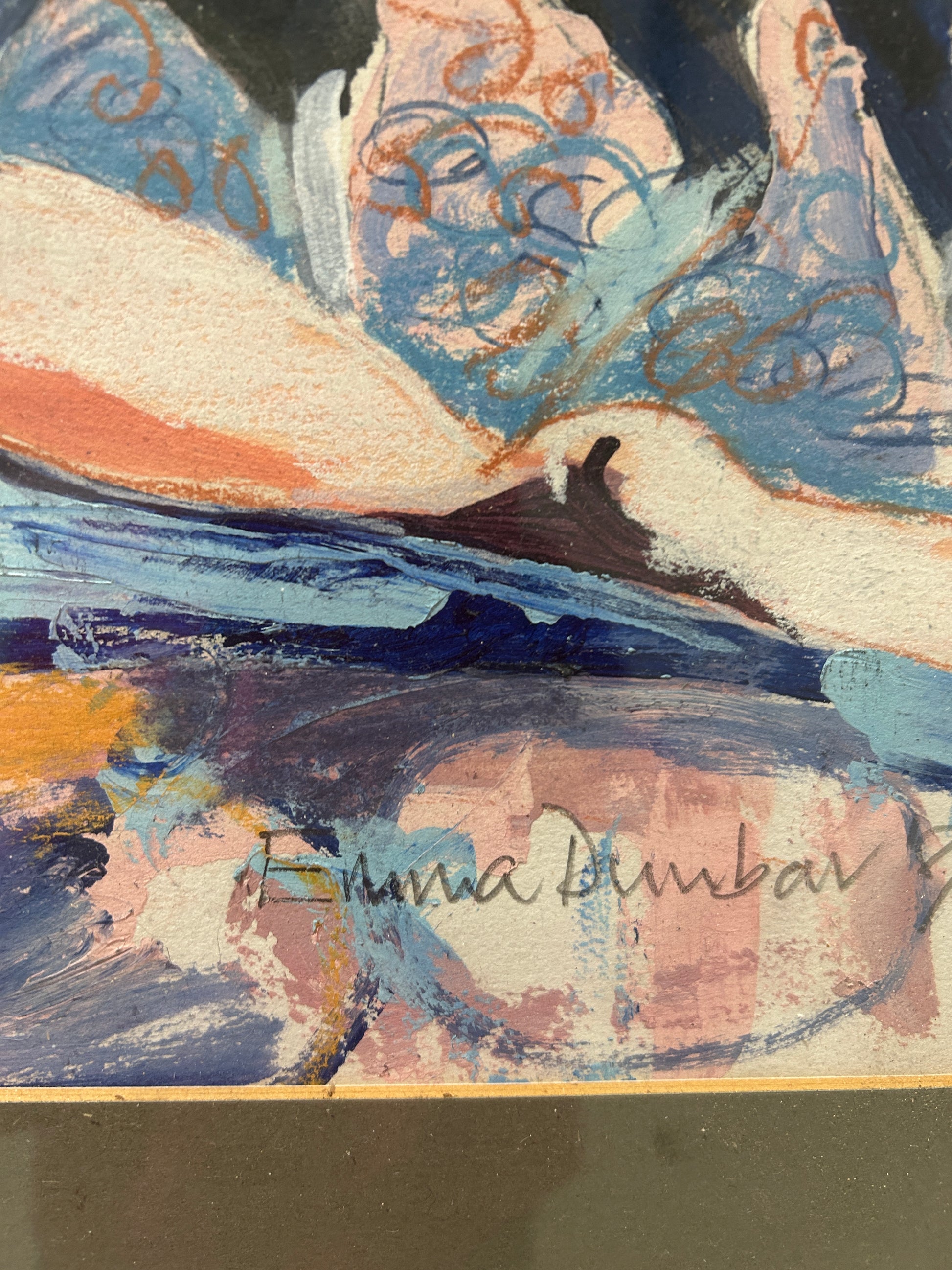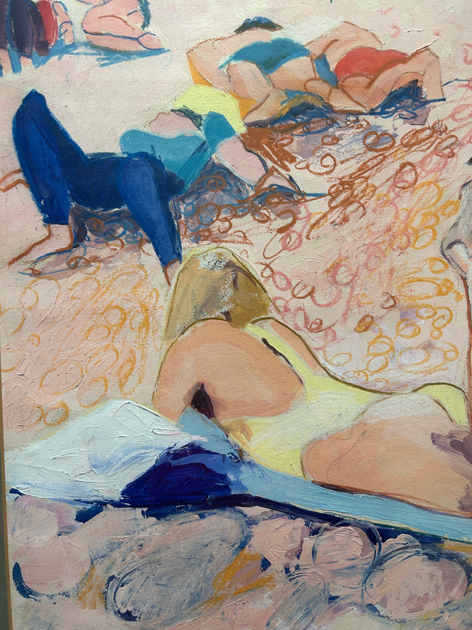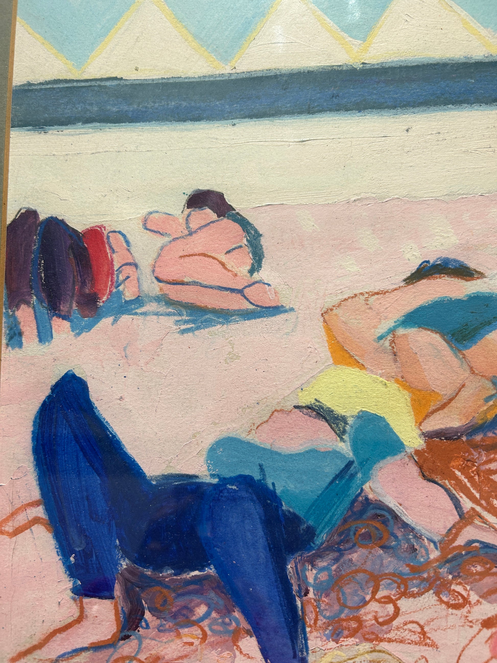 We love this painting depicting sunbathers and a dog on the beach in Brighton by the well listed and sort after British female contemporary artist Emma Dunbar b.1961.