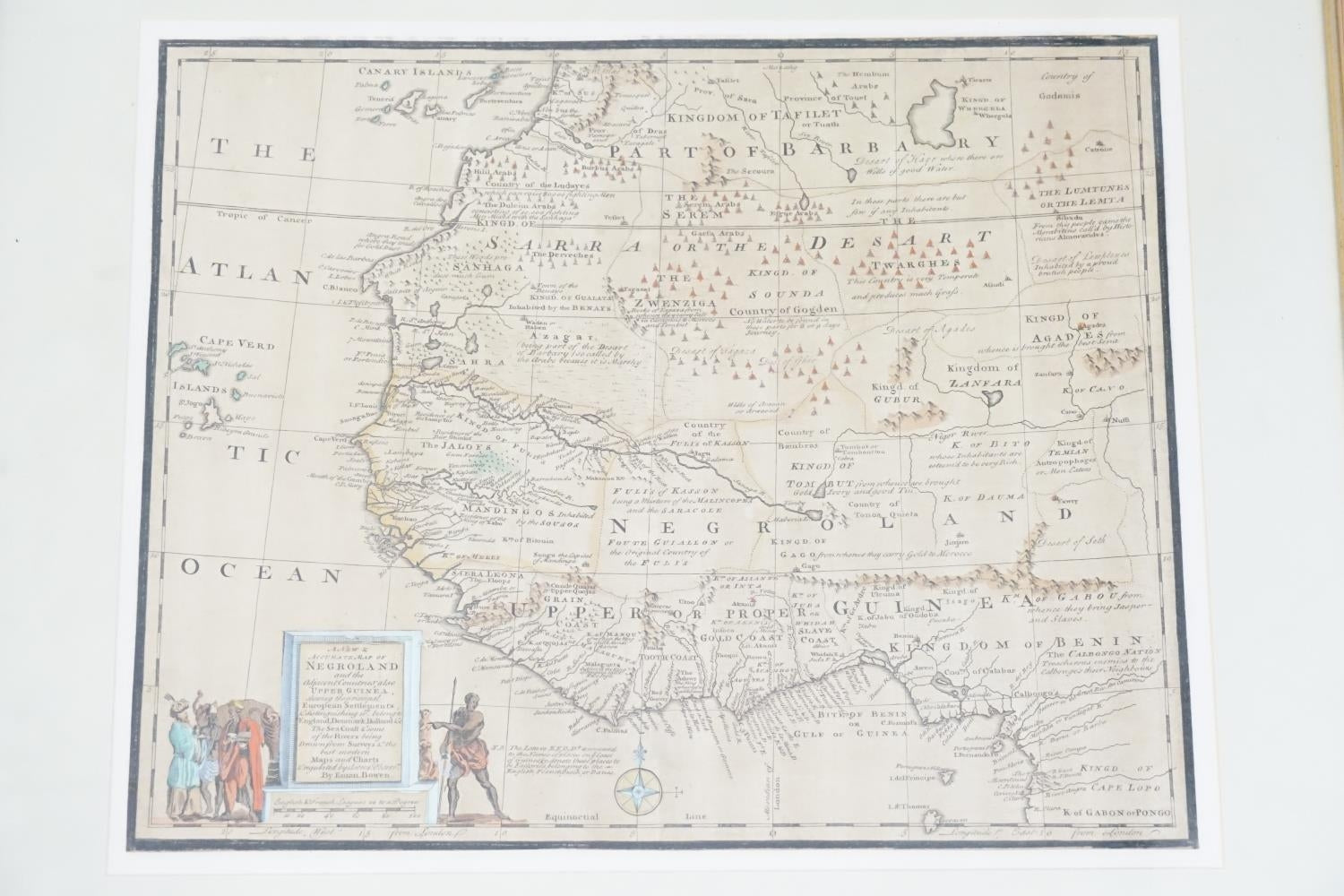 Bowen's map of West Africa from the Canary Islands to Congo. From 'A Complete System of Geography'. Decorated with a compass rose and a nice figural title cartouche.
