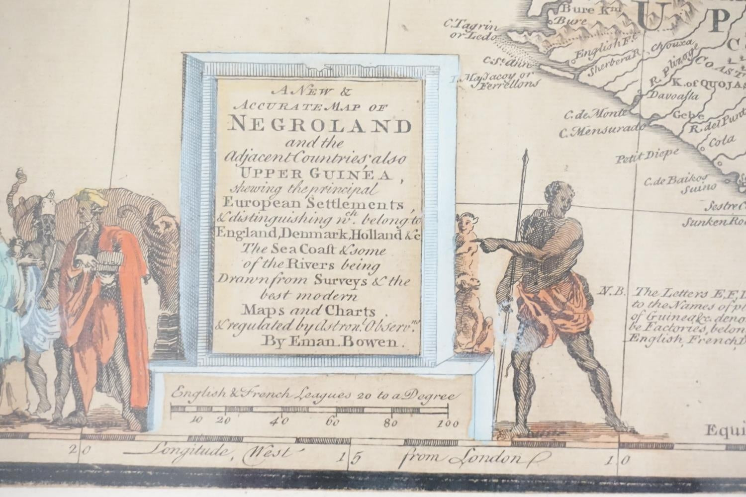Very Rare 1747 E BOWEN'S MAP OF WEST AFRICA SLAVERY HAND COLOURED