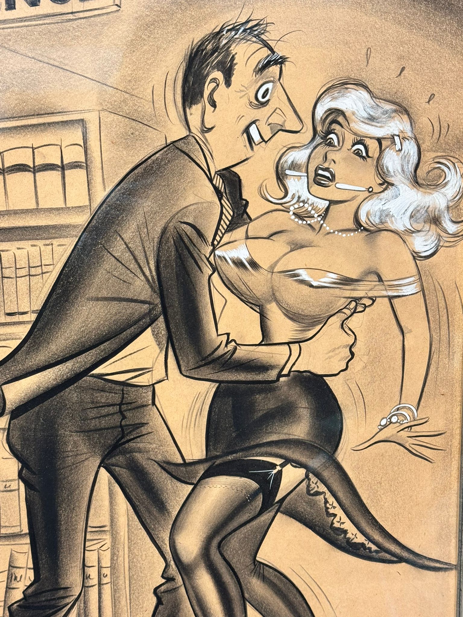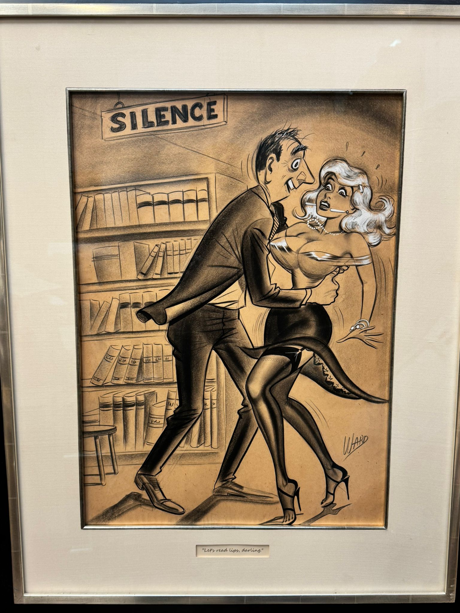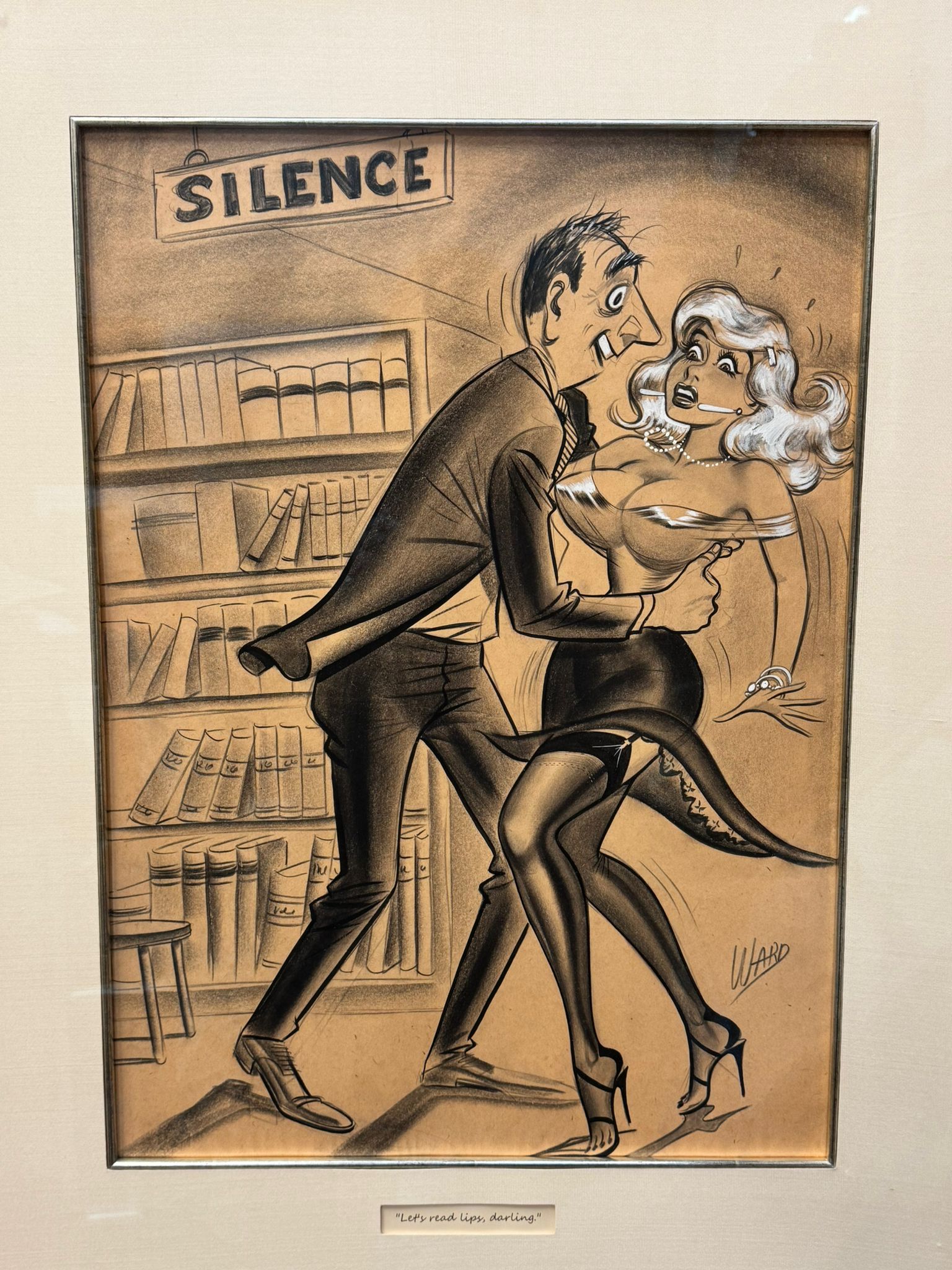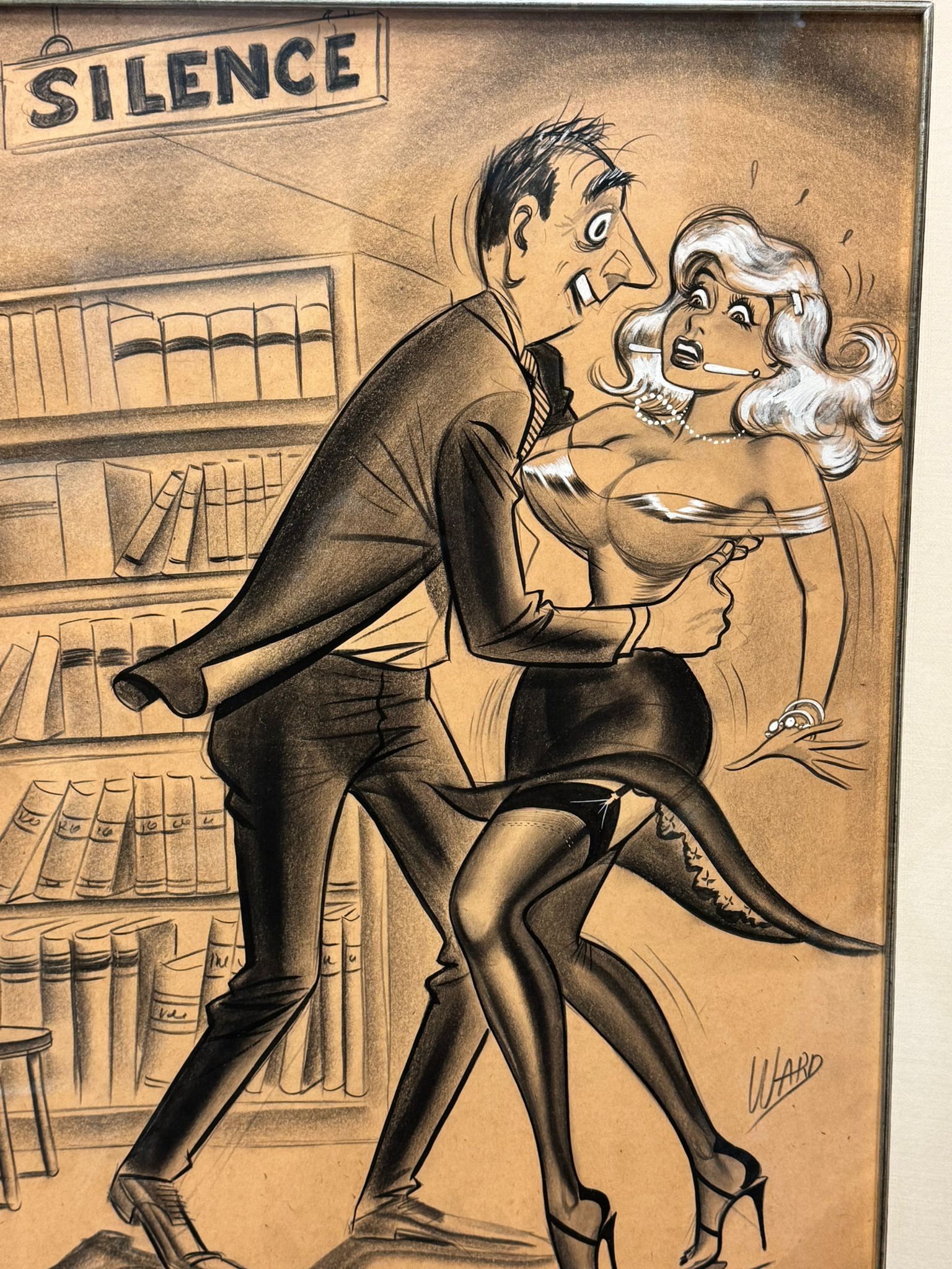 An original and incredibly sought after cartoon by the well listed American artist, William Hess Ward, usually known as Bill Ward 1919-1998. Signed to lower left and presented in a decent Gilders Framing museum quality frame, glazed.