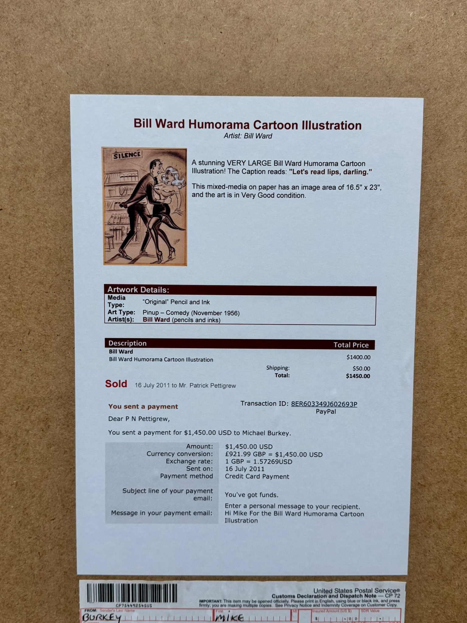 WILLIAM ‘BILL’ HESS WARD 1919-1998 AMERICAN ORIGINAL CARTOON GLAMOUR GIRL SIGNED