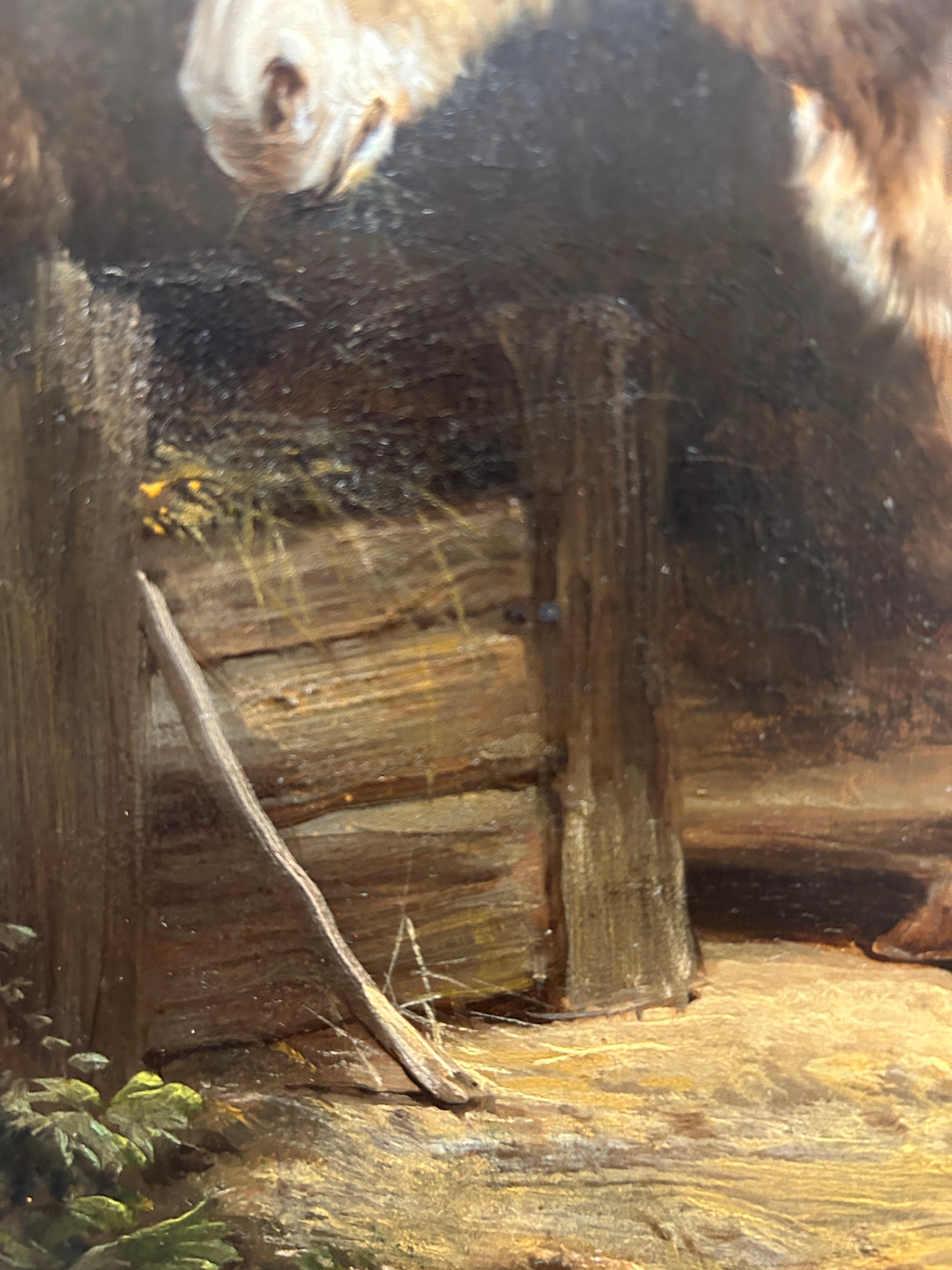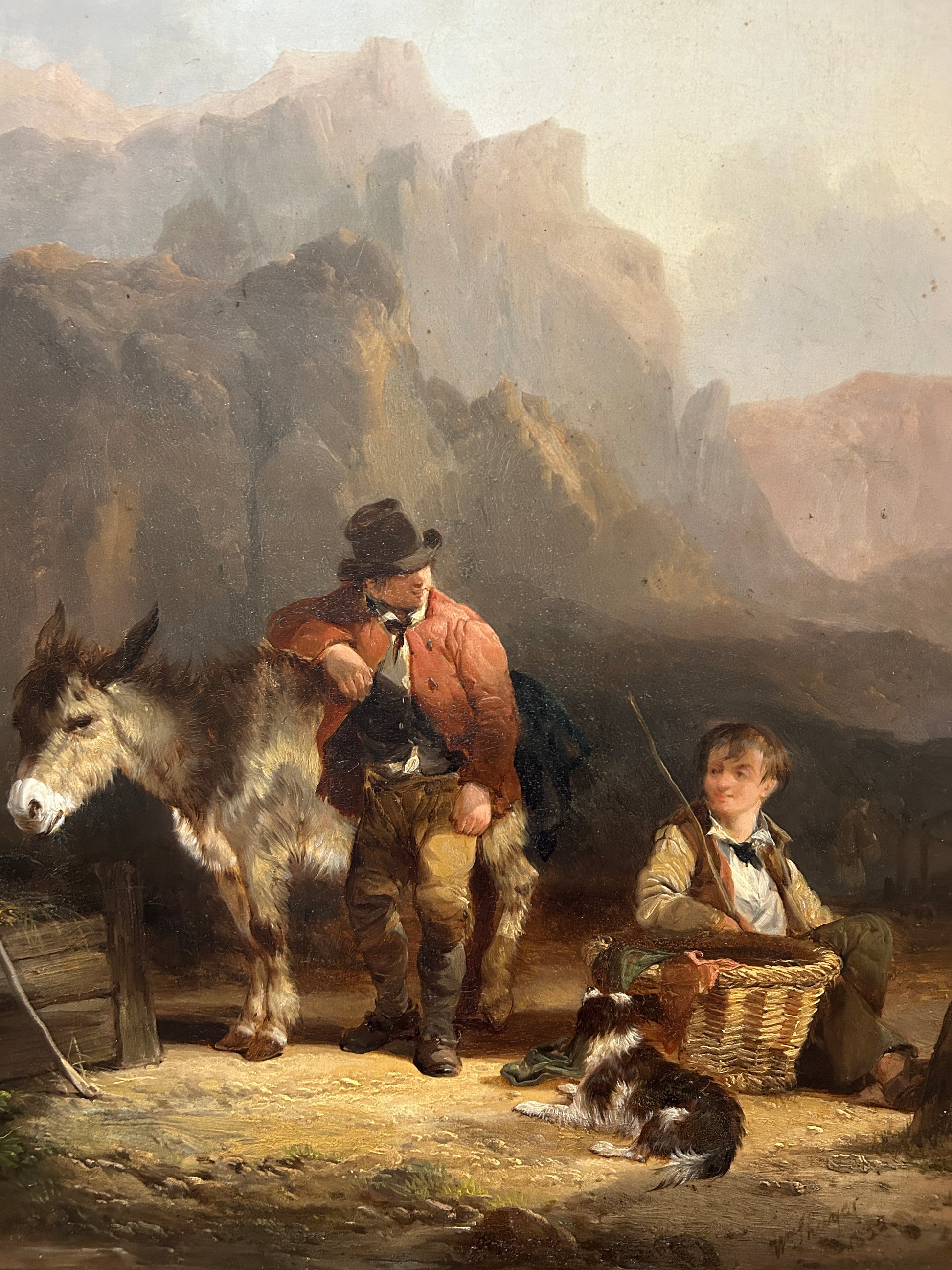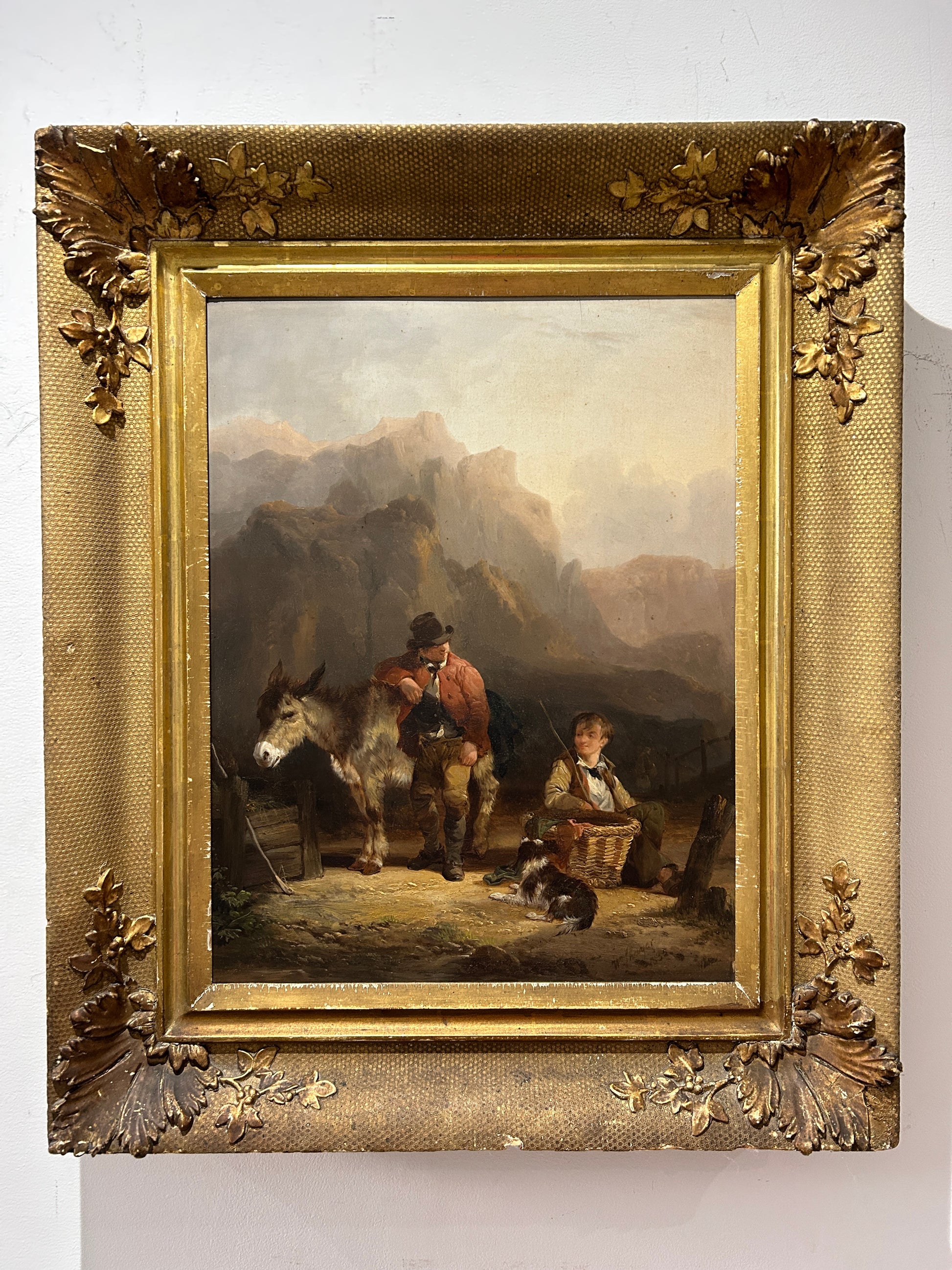 William Shayer 1787-1878 “Two guys with donkey and dog circa 1830’s hangin’ out” :) This is a fabulously executed painting by the renowned artist William Thayer. Housed in a beautiful gilt frame and in country house condition. The painting has not been retouched or relined. William Shayer b1787 Oil on board 62 x 52 cm signed lower right £900 William Shayer (1787–1879) was an English landscape painter and figure painter who became prominent during the Victorian era. William Joseph Shayer, senior was born on June 1787, in Southampton. He was a self-taught artist, who began by painting decorations on rush-bottom chairs. He then moved on to painting carriages in the town of Guildford, after which he started doing heraldic painting. Ultimately, he began painting oil on canvas and became skilled at portraying woodland scenes with gypsies, people and animals in front of country inns and farm houses, and beach scenes crowded with boats and fishermen. He lived mainly in the south of England, in Shirley, Southampton, but painted throughout Hampshire and the New Forest. Michael Hoy, a wealthy Southampton merchant, was one of his most enthusiastic patrons and bought many of Shayer's paintings of the area.